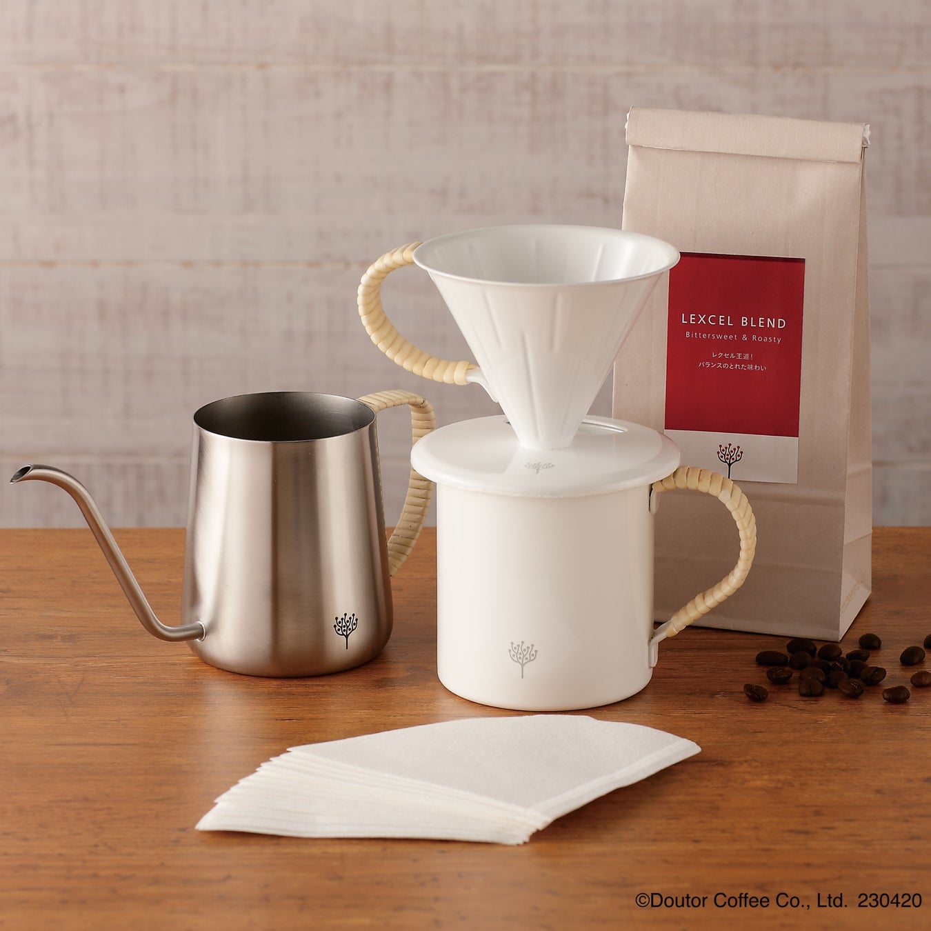 新生活にぴったりのコーヒー器具一式とコーヒー豆がついたお得なセットです。