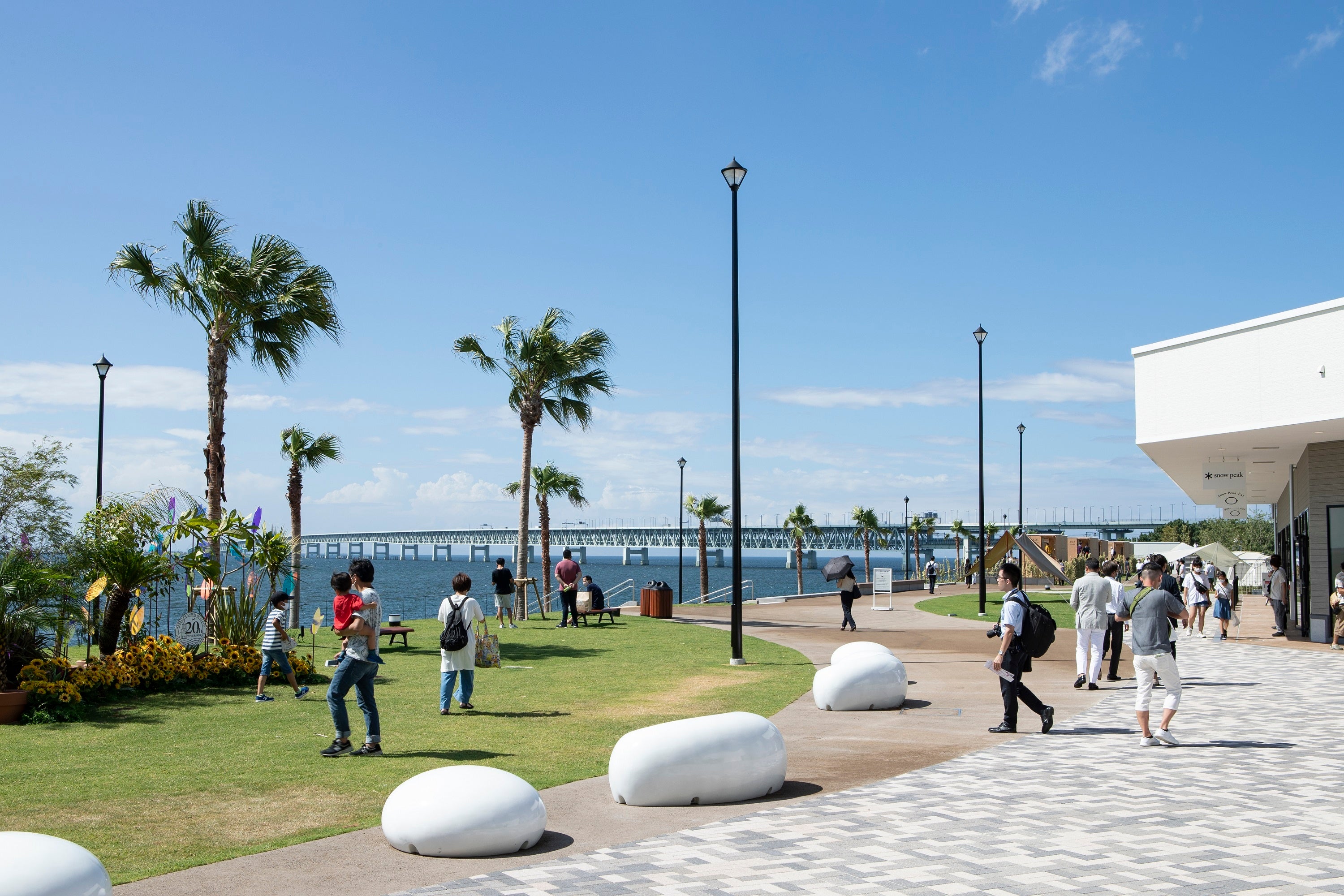 りんくうプレミアム・アウトレットは2000年11月に開業し、4度の増設を経て2020年8月、大阪湾を一望するフードホールやグランピング施設、さまざまなアクティビティを楽しめるグリーンパークを備えたシーサイドエリアをオープンしました。店舗数約250、西日本最大規模の店舗面積を誇るシーサイドアウトレットへ進化を遂げ、関西広域からのお出かけに、地元からは日常的に開放感ある海辺のエリアを親しんでご利用いただいています。