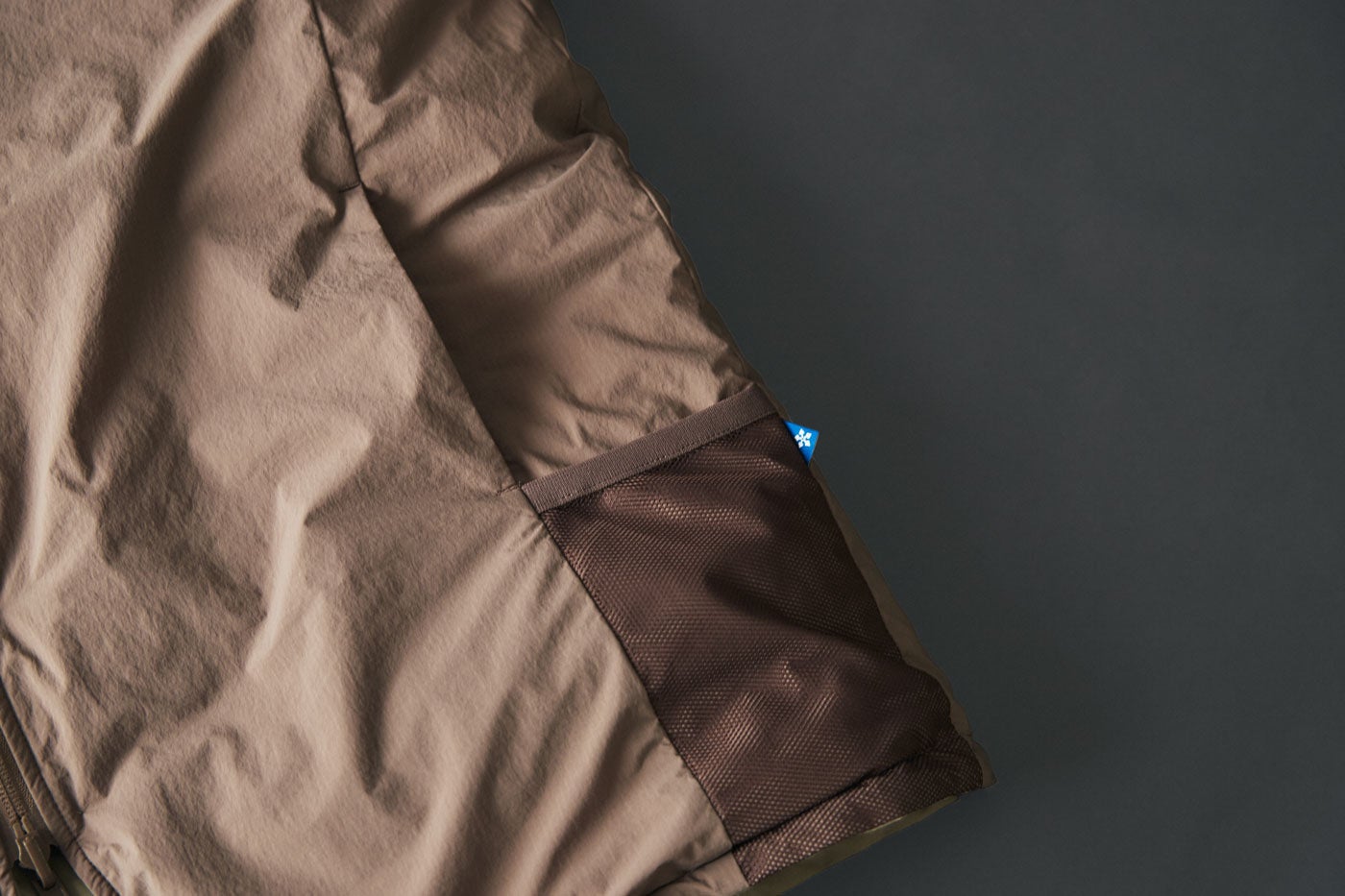 表面には、コットン、ナイロンの混紡生地を採用。その混紡率の割合から「ロクヨンクロス」の愛称で親しまれる、昔ながらの機能素材。軽い透湿撥水を有した全天候型のファブリックです。