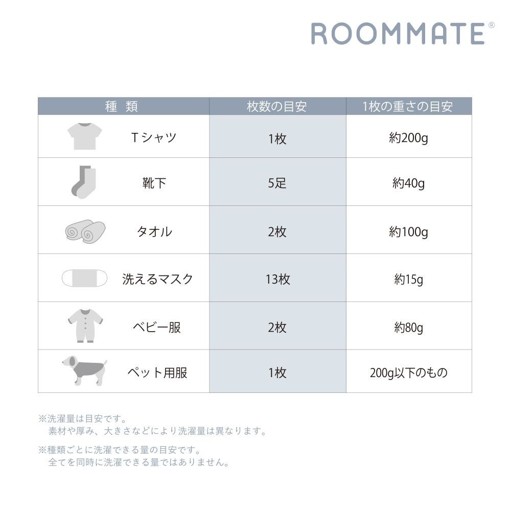 洗濯目安:洗えるマスク13枚、Tシャツ1枚、靴下5足、ベビー服2枚、ペット用服1枚、タオル2枚