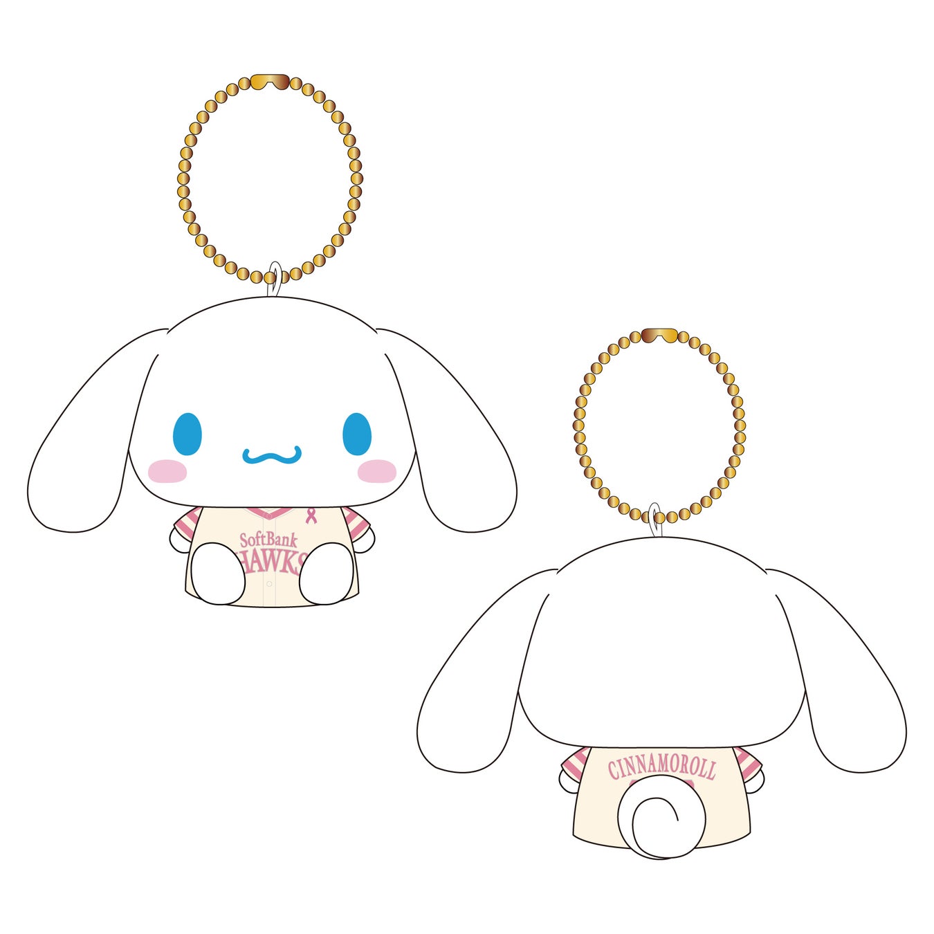 シナモロールとホークス選手のコラボや、ピンクリボンユニフォームを着たマイメロディ、シナモロールのグッズのアイテムを一部ご紹介します♪