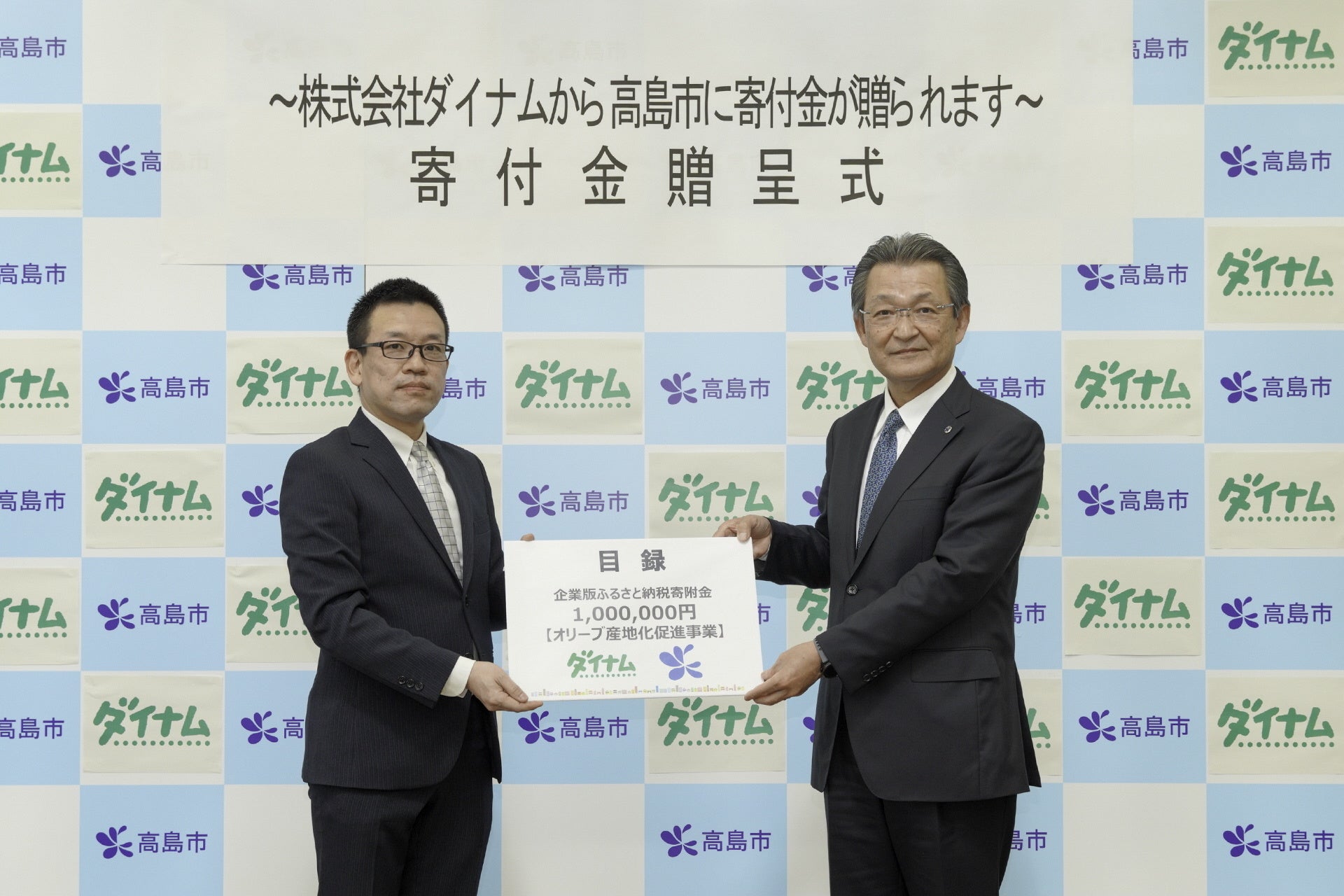 「高島市オリーブ産地化促進事業」を応援するため、100万円を寄付させていただきました。