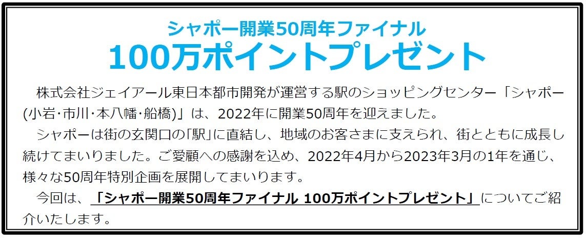 - シャポー開業50周年ファイナル 100万ポイントプレゼント