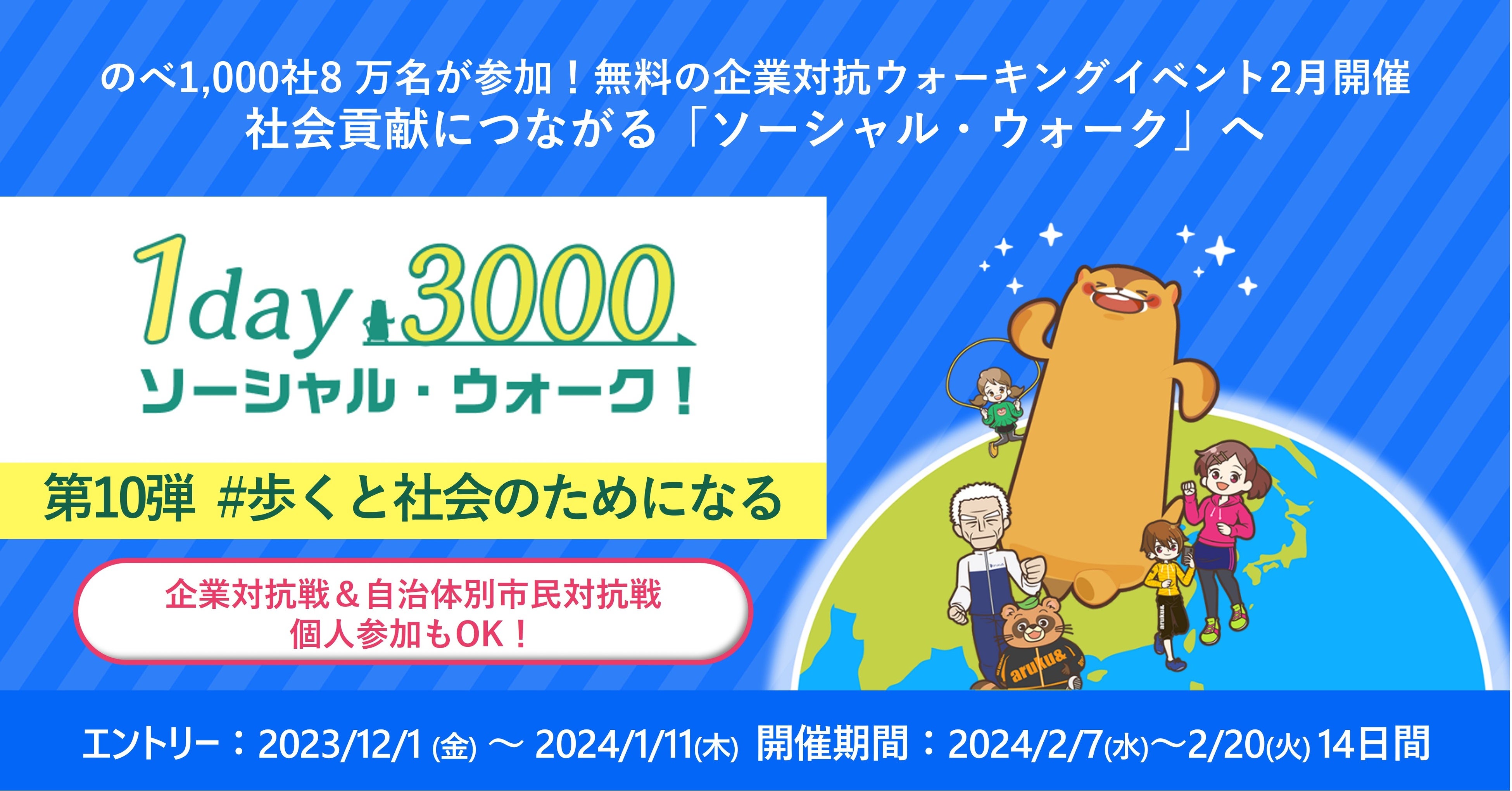 のべ1,000社参加のウォーキングイベント「1day3000」2月開催!