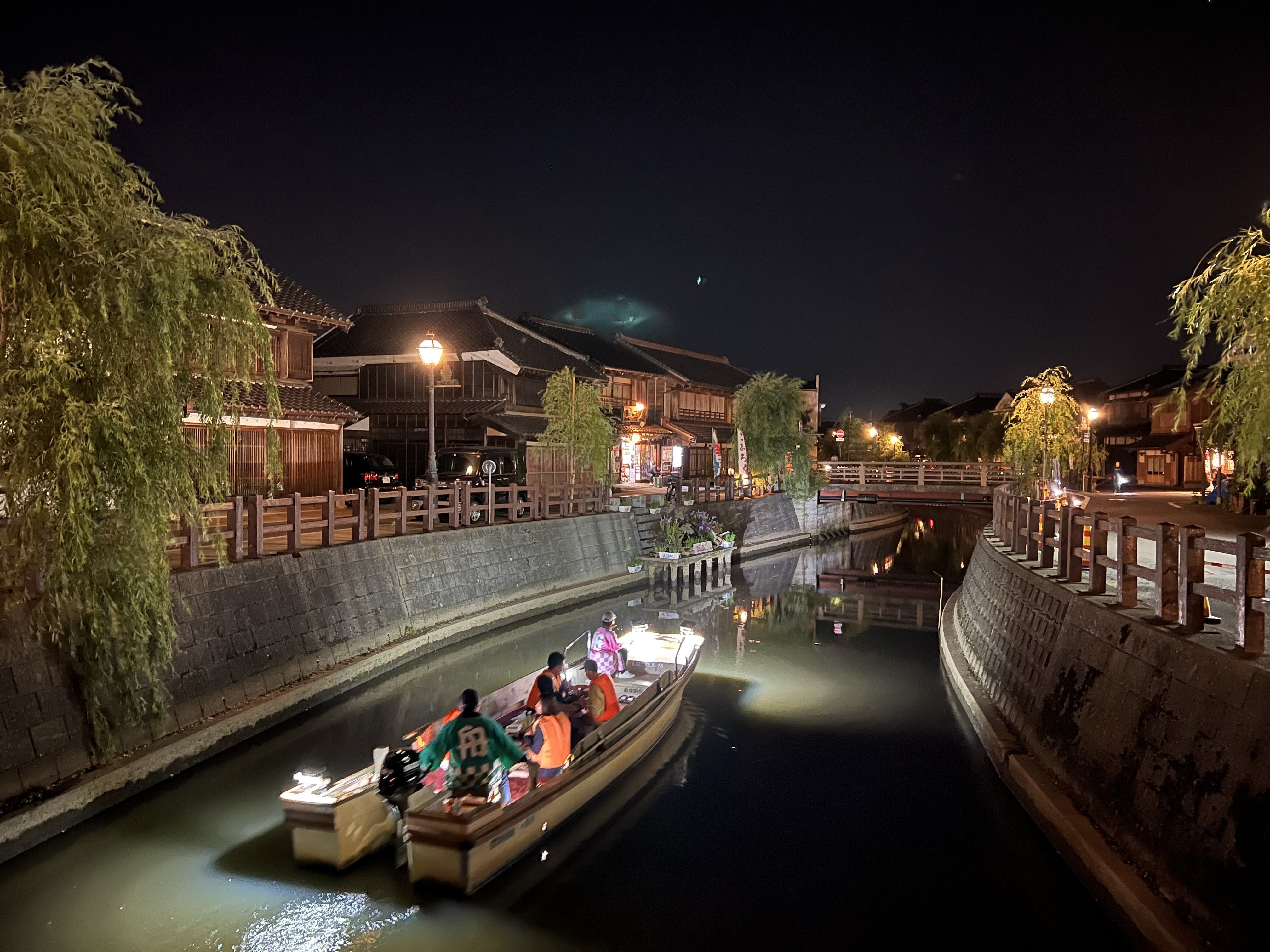 水郷佐原ならではの舟巡りで、普段見ることのない目線から、まちなみをお愉しみいただけます。静かなまちの中で夜舟巡りに出かけて、澄み渡る夜空と輝く月を眺めつつ、まるで江戸時代にタイムスリップしたかのように贅沢なひとときをお過ごしください。