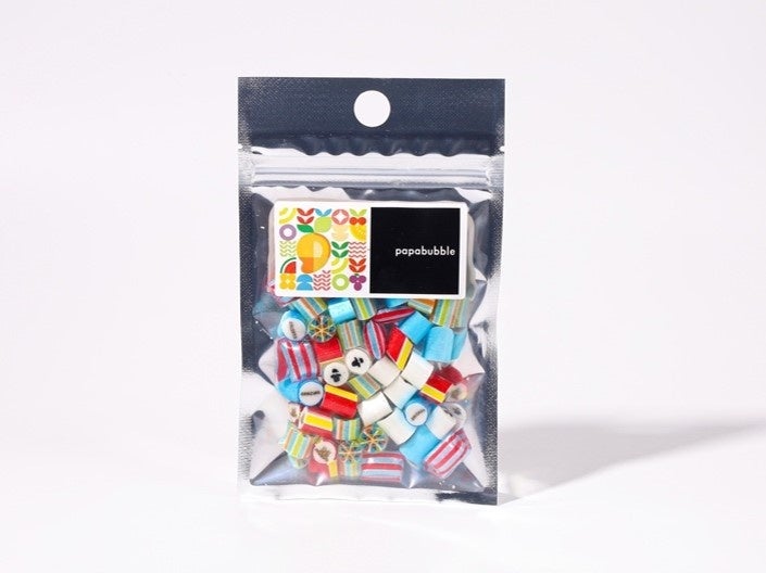 パパブブレ発祥の地であるスペイン。その本店があるバルセロナをイメージしたキャンディミックスです。細かく難易度の高いサグラダファミリアの柄は、職人技が光る完成度です。光にかざすと透けて綺麗な柄は、スペインタイルをイメージしたデザインで仕上げています。パパブブレの歴代で人気の高い、5種類のフレーバーで揃えました。