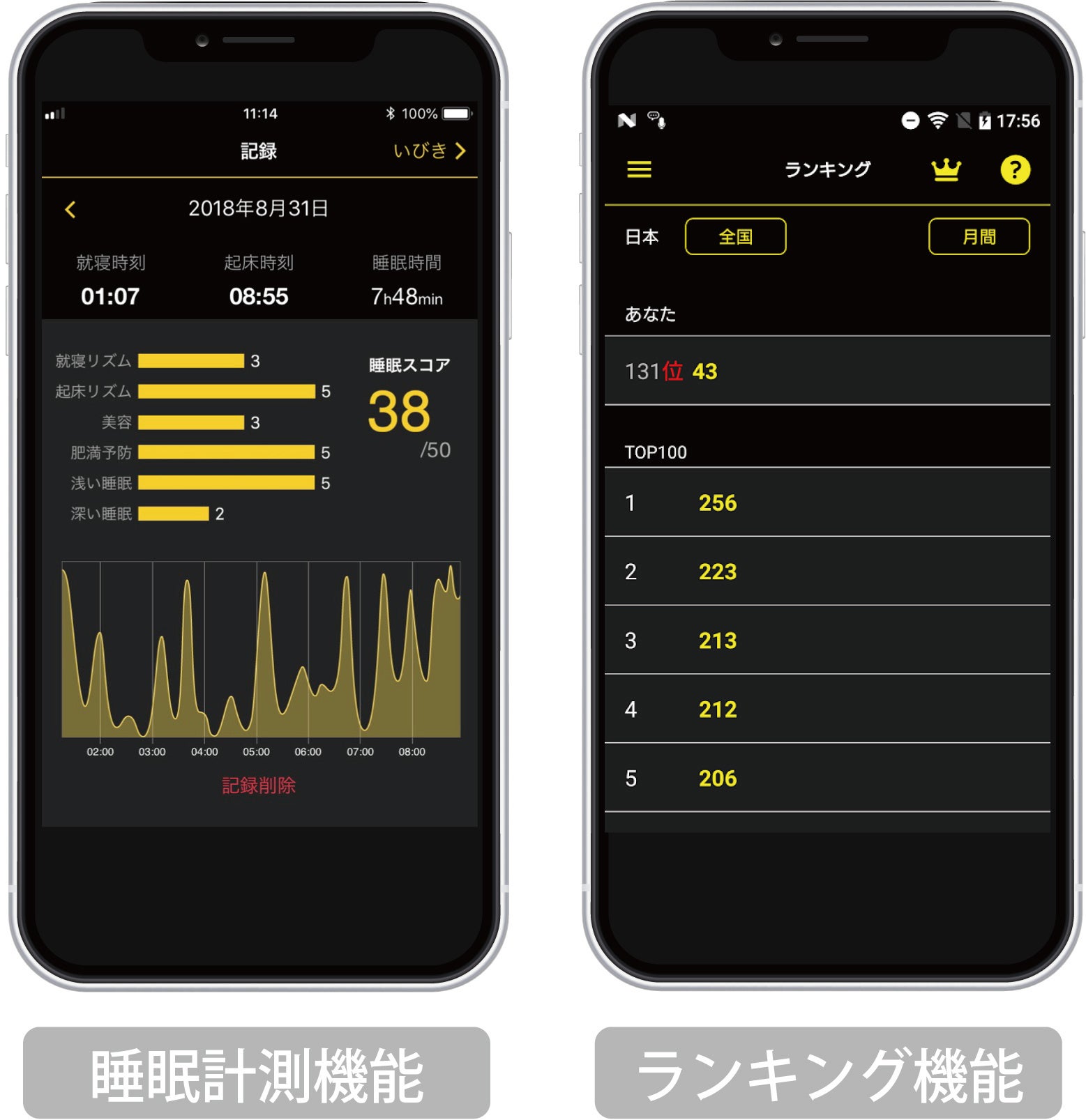 ▼睡眠計測アプリ「睡眠ランキング」