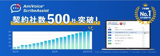 AI音声認識文字起こし支援アプリケーション「AmiVoice® ScribeAssist」の契約社数が500社を突破