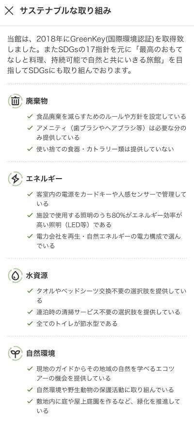 宿泊施設ページの「サステナビリティアイコン」掲載例