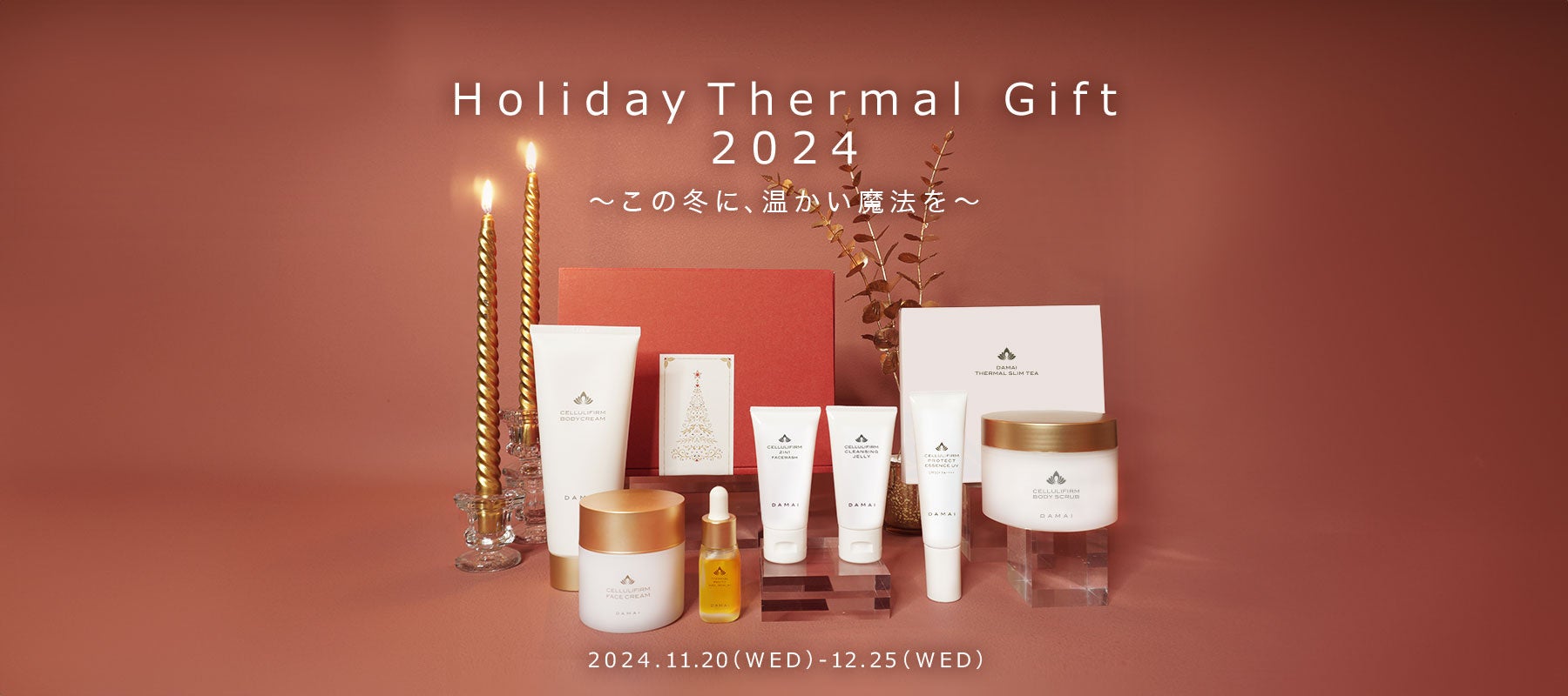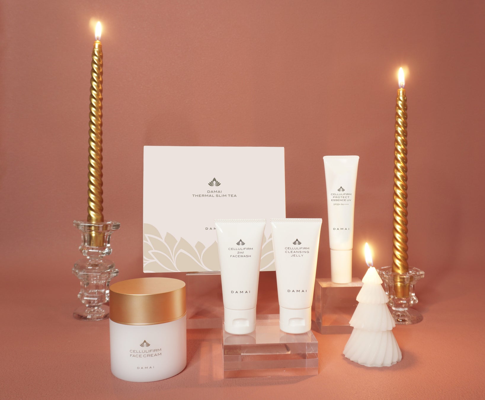 オールラウンドなセットまで。 来春発売予定の「ダマイ クレンジングジェリー(温感クレンジング)」「ダマイ セルリファーム 2in1フェイスウォッシュ(クレイスクラブ洗顔料)」は、当コフレ限定での販売となっています。また、人気の温活茶「サーマルスリムティー」の4ピロー入りが限定パッケージで登場。ご自身へのご褒美として、大切な方へのギフトとして、この冬温まりたい全ての人たちへおすすめのコフレです。