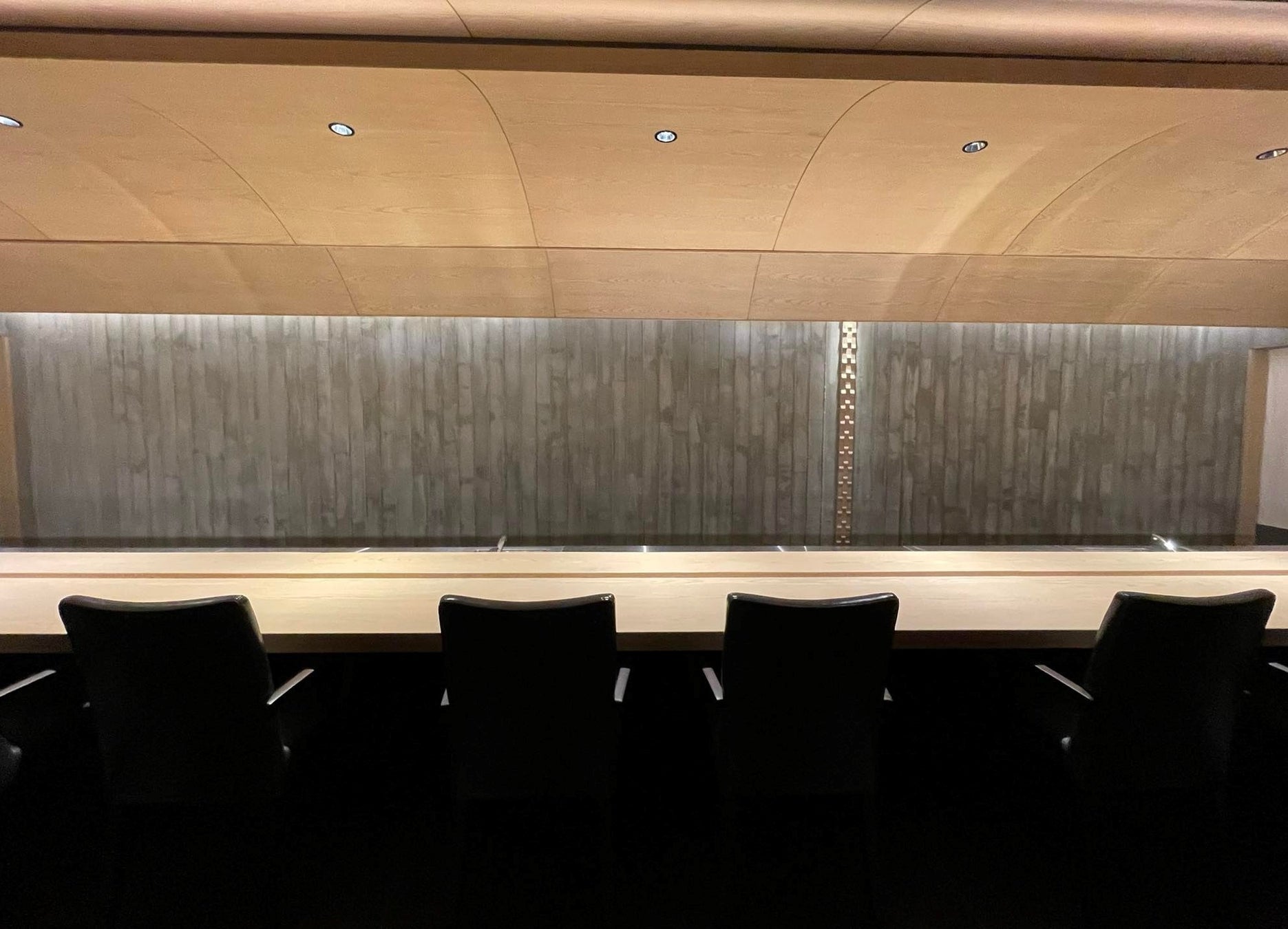 同店があるのは、ベトナム有数の高級住宅街と昔ながらの下町風情漂う街並みが共存しているホーチミン7区で、日本人駐在員が多く居住しているものの、店舗付近はローカル店が立ち並ぶ日本食文化を伝えるのに最適な立地と言えます。入口の扉は暗証番号を入力して開ける仕様で、無垢板のテーブルや天井、シルバーの漆喰の壁で装飾された異空間と相まって、非日常感と敷居の高さを醸し出します。お祝い事や会食などでご利用いただけるよう、プライベートカウンター席と個室も用意しています。