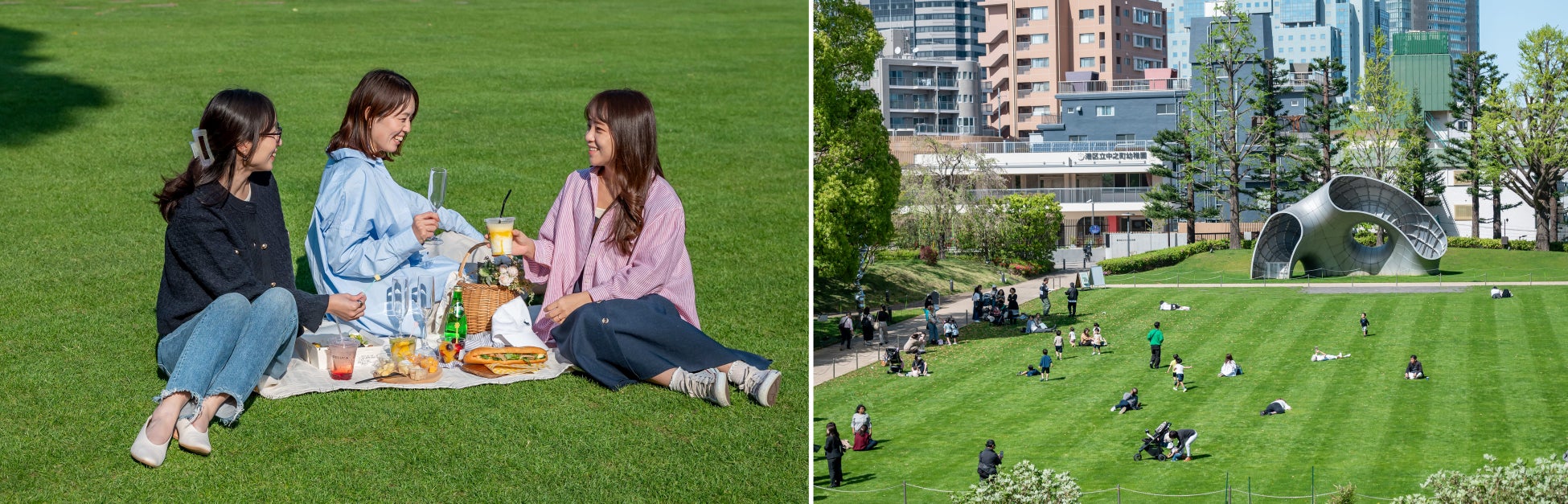 \ゴールデンウィーク終了後も芝生の上でピクニックを楽しめる!/