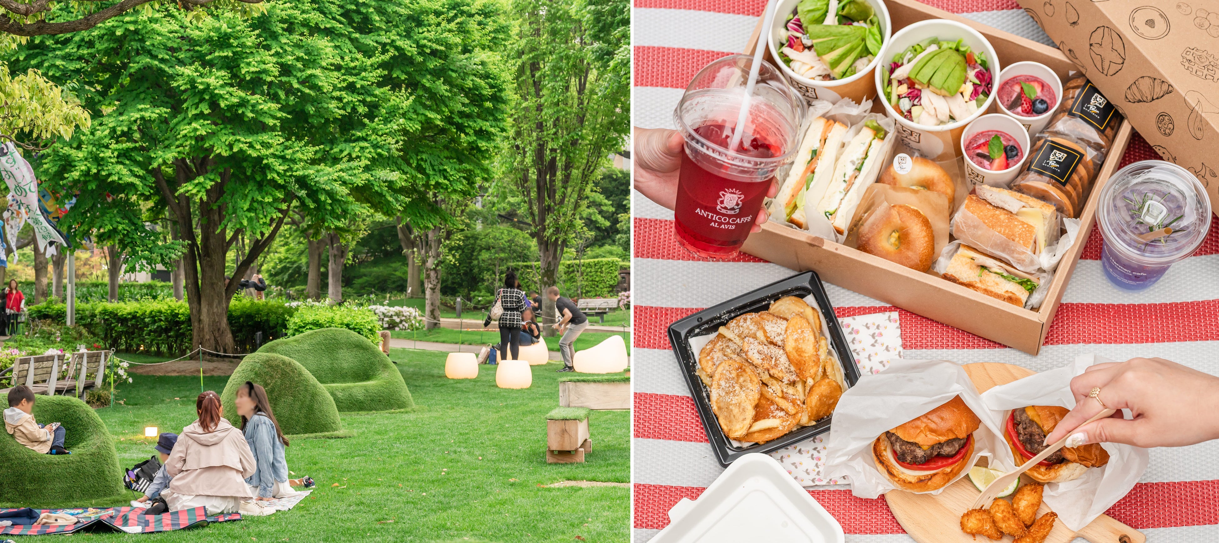 ミッドタウン・ガーデンの一部エリアは、イベント終了日の5月31日(日)まで開放。館内の人気店によるテイクアウトメニューを片手に、ゴールデンウィーク終了後も新緑の季節を感じながらピクニックをお楽しみください。