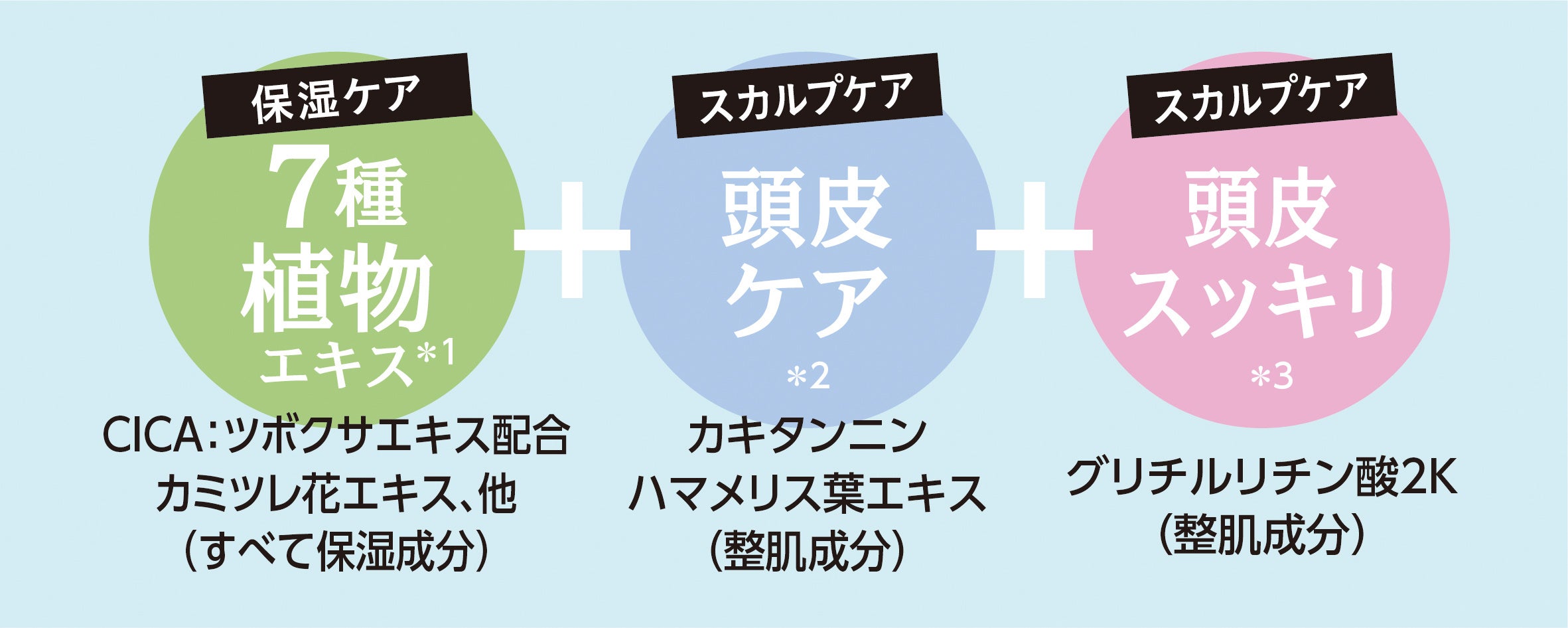 *1 ツボクサエキス、イタドリ根エキス、オウゴン根エキス、カンゾウ根エキス、チャ葉エキス、カミツレ花エキス、ローズマリー葉エキス(すべて保湿成分)