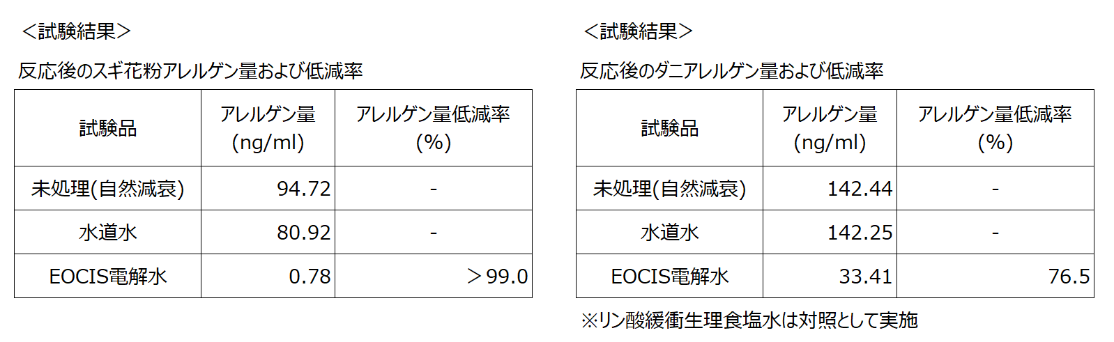 EOCIS技術で生成された電解水 花粉・ダニアレルゲンの低減に効果
