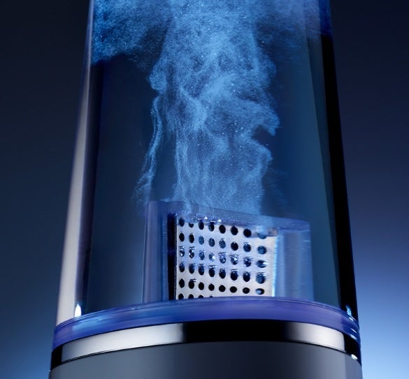 内部に組み込まれた特殊電極に最適な電圧をかけ、水道水を電気分解することで、除菌・消臭・防カビ・アレルゲン低減効果を持った高機能電解水に一時的に変化させる技術です。水道水から一時的に変化した高機能電解水は、噴霧した対象に付着した有機物と反応すると水に戻ります。また、生成したままの状態で放置しておくと、次第に水に戻る性質を持っています。
