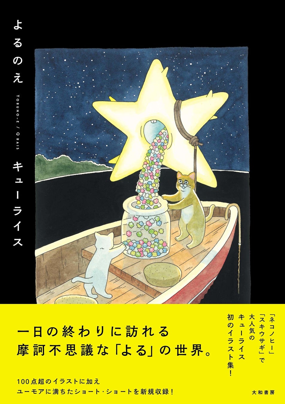 「ネコノヒー」「スキウサギ」で大人気のキューライス初のイラスト集!『よるのえ』発売!(2/17発売)