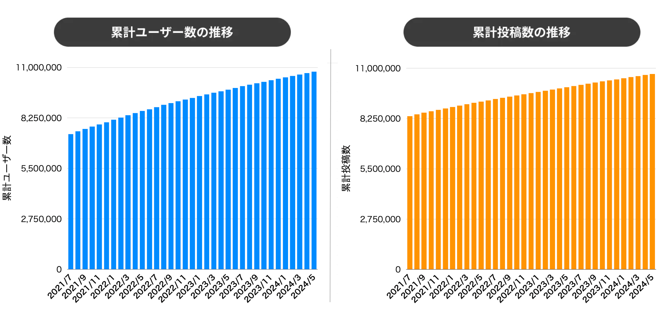 サービス開始からこれまでの9年間で、累計投稿アイテムは1070万作品、累計登録ユーザーは1040万人を突破しました。