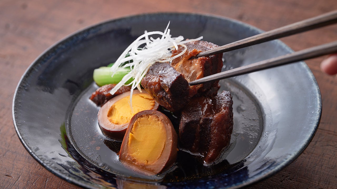旨みの強い豚肉と茹で卵をしっかり煮込み、それぞれの調味料の風味とコクを封じ込めています。照りの出たお肉は、箸を入れると、ほろりと切れるほどやわらか。