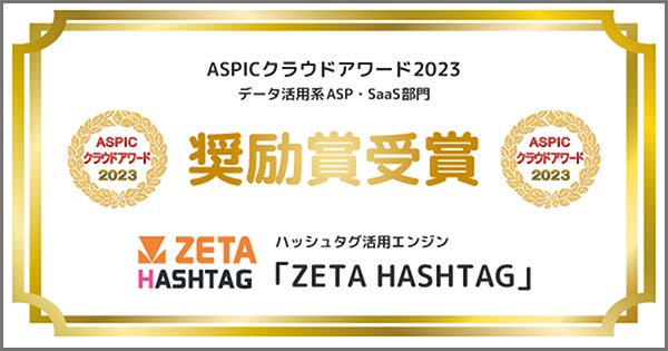 ハッシュタグ活用エンジン「ZETA HASHTAG」が「第17回ASPICクラウドアワード2023」のデータ活用系ASP・SaaS部門において『奨励賞』を受賞
