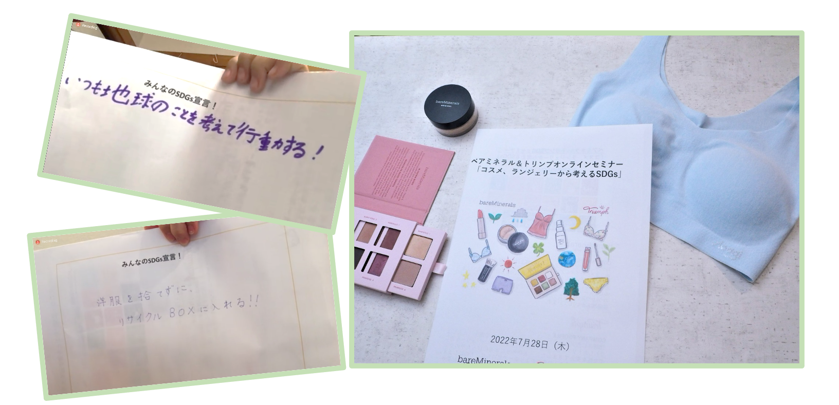 女性たちのありのままに寄り添うメッセージ「It’s Personal 〜きれいごとより、私ごと。〜」を掲げるトリンプ・インターナショナル・ジャパン株式会社(本社:東京都中央区築地5-6-4、代表取締役社長:ヴァンサン・ネリアス)は、「ベアミネラル」を輸入販売するベアエッセンシャル株式会社と共同で、ランジェリーとコスメからSDGsを考える小学生向けオンラインセミナーを7月28日(木)にオンラインで開催しました。