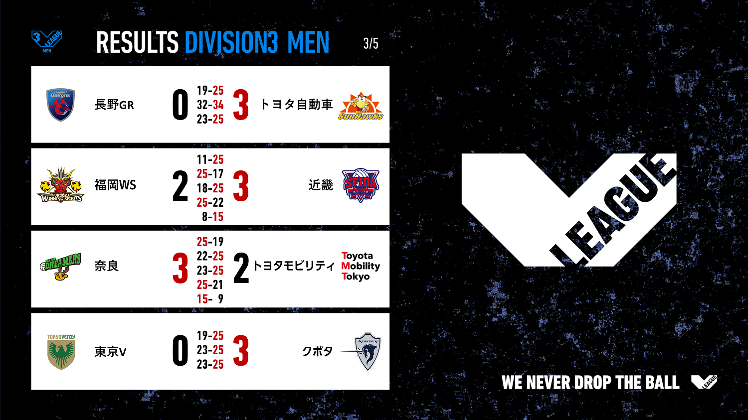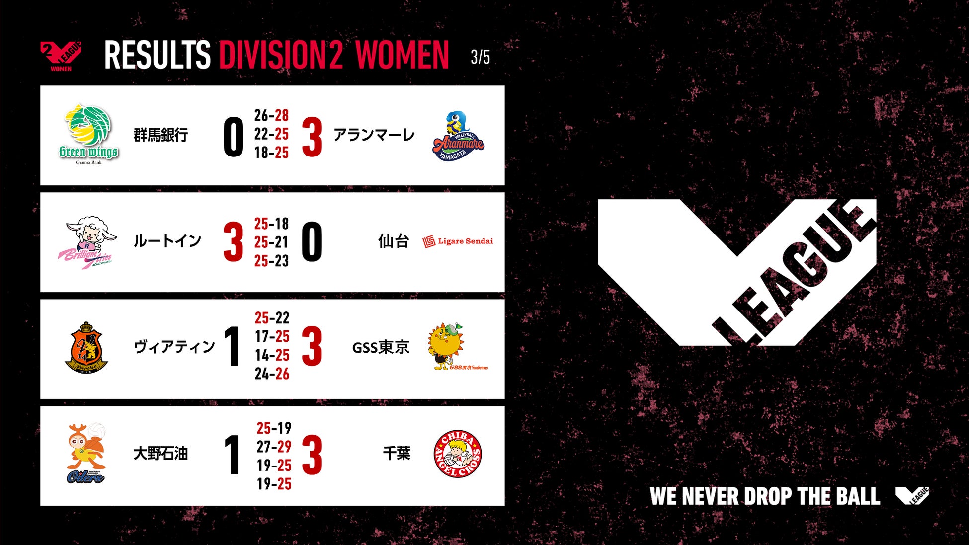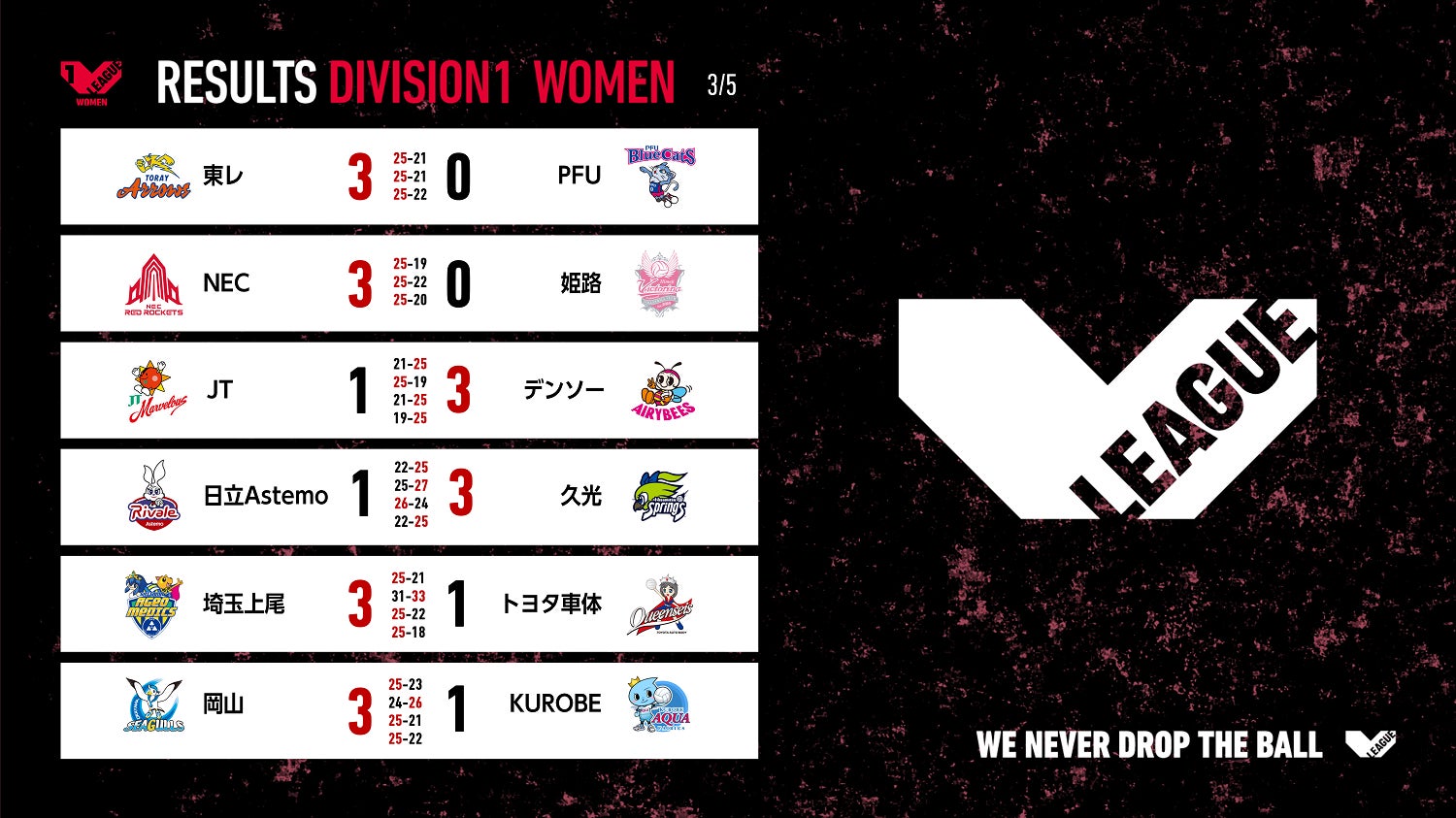 バレーボール国内最高峰リーグ V.LEAGUE【3月5日の試合結果】
