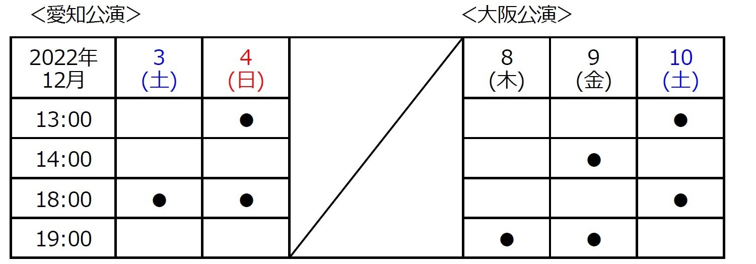 <愛知>2022年12⽉3⽇(⼟)〜12⽉4⽇(⽇)@名古屋市芸術創造センター/3ステージ