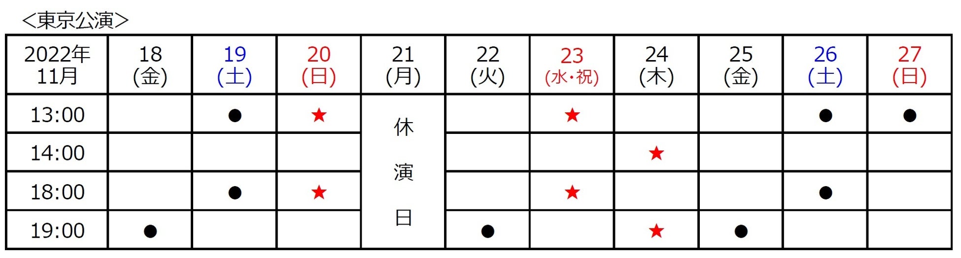 <東京>2022年11⽉18⽇(⾦)〜11⽉27⽇(⽇)@サンシャイン劇場/14ステージ