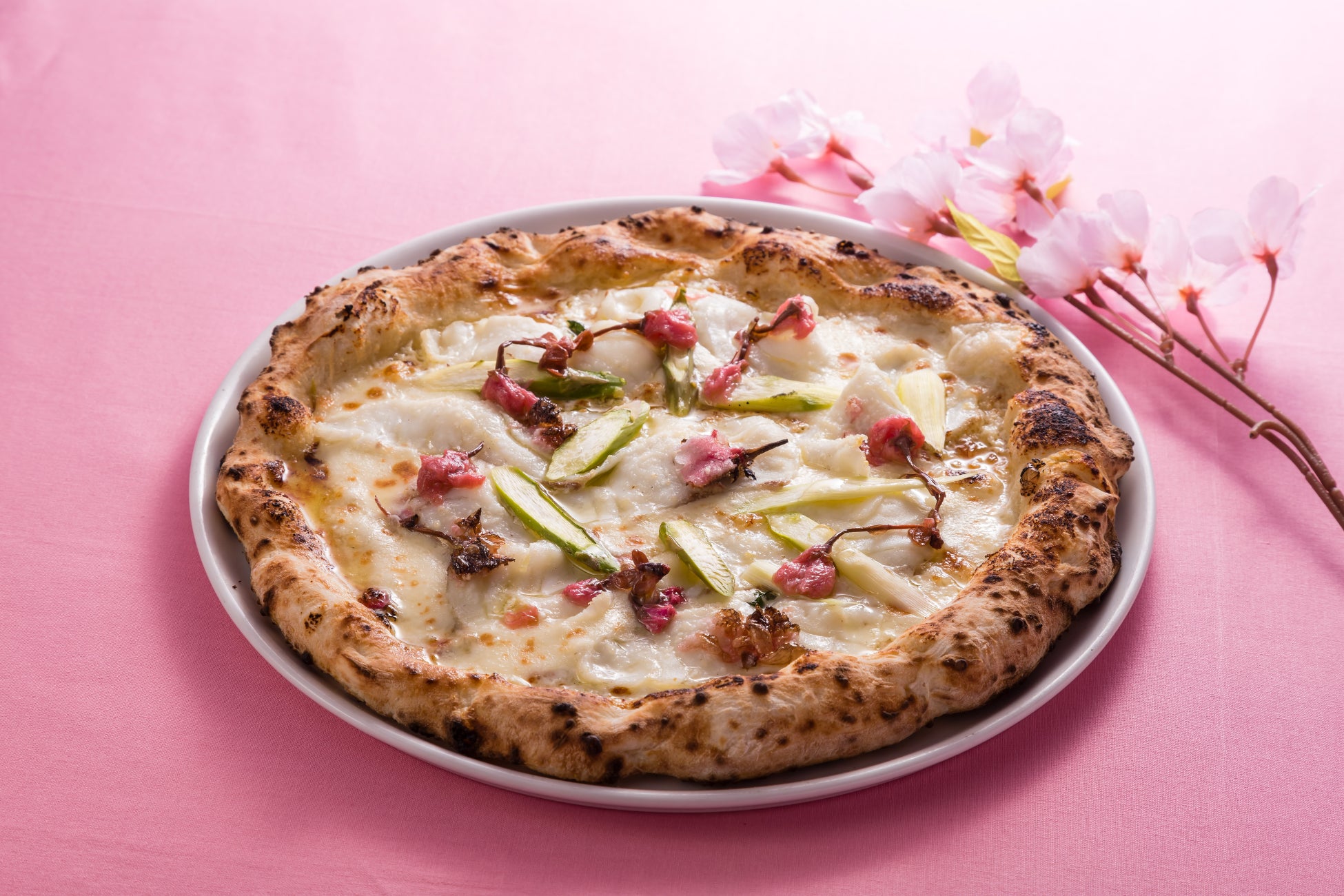 内容:桜の塩漬けを混ぜ込んだチーズベースと、今が旬の鯛の調和が楽しめるピッツァ。ハチミツ入りのゴルゴンゾーラがアクセント。