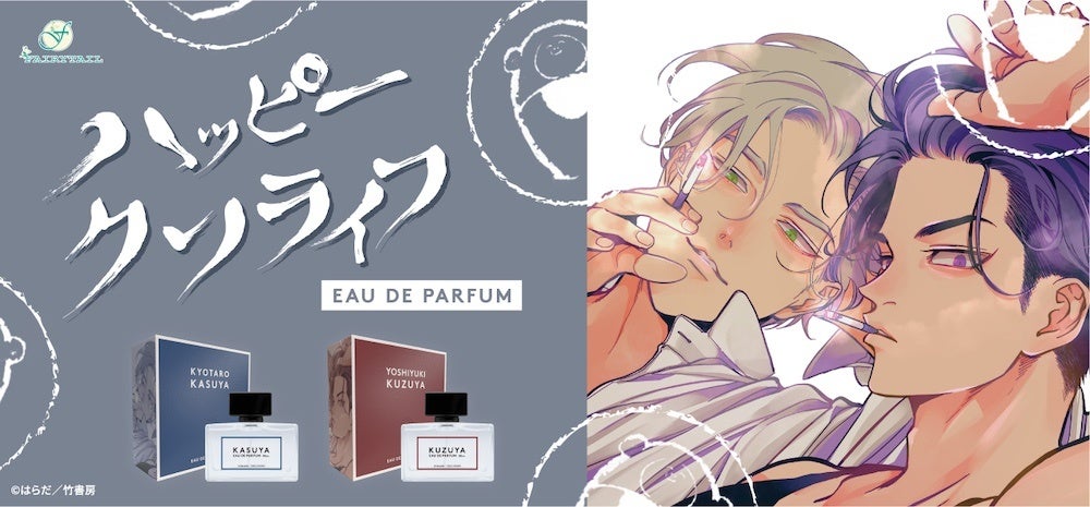 BL界の鬼才・はらだ先生原作の大人気BL漫画「ハッピークソライフ」より粕谷京太郎、葛谷善行をイメージした香水が登場です。