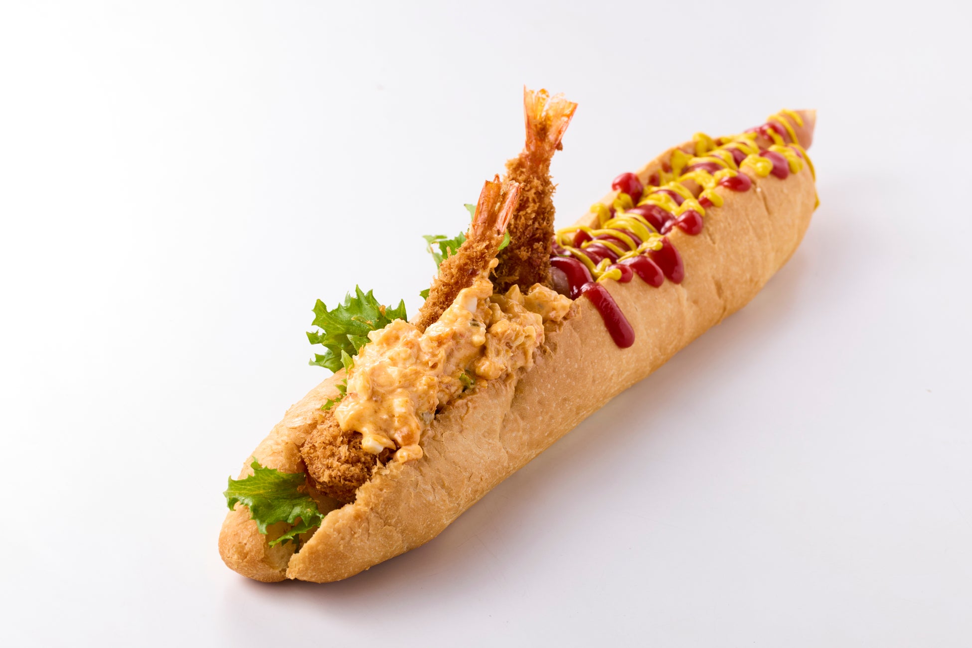 エビフライ入りのオリジナル「オカダドッグ」が完成しました。