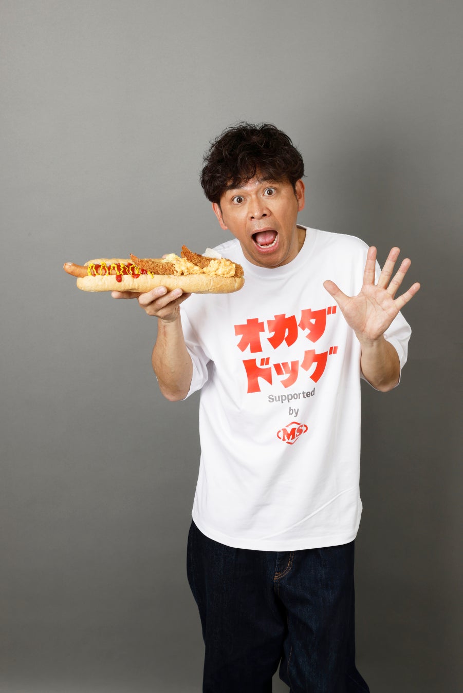 「いてまえドッグ」のプロデュースは芸能人初、岡田のこだわりが詰まった「オカダドッグ」が完成しました。