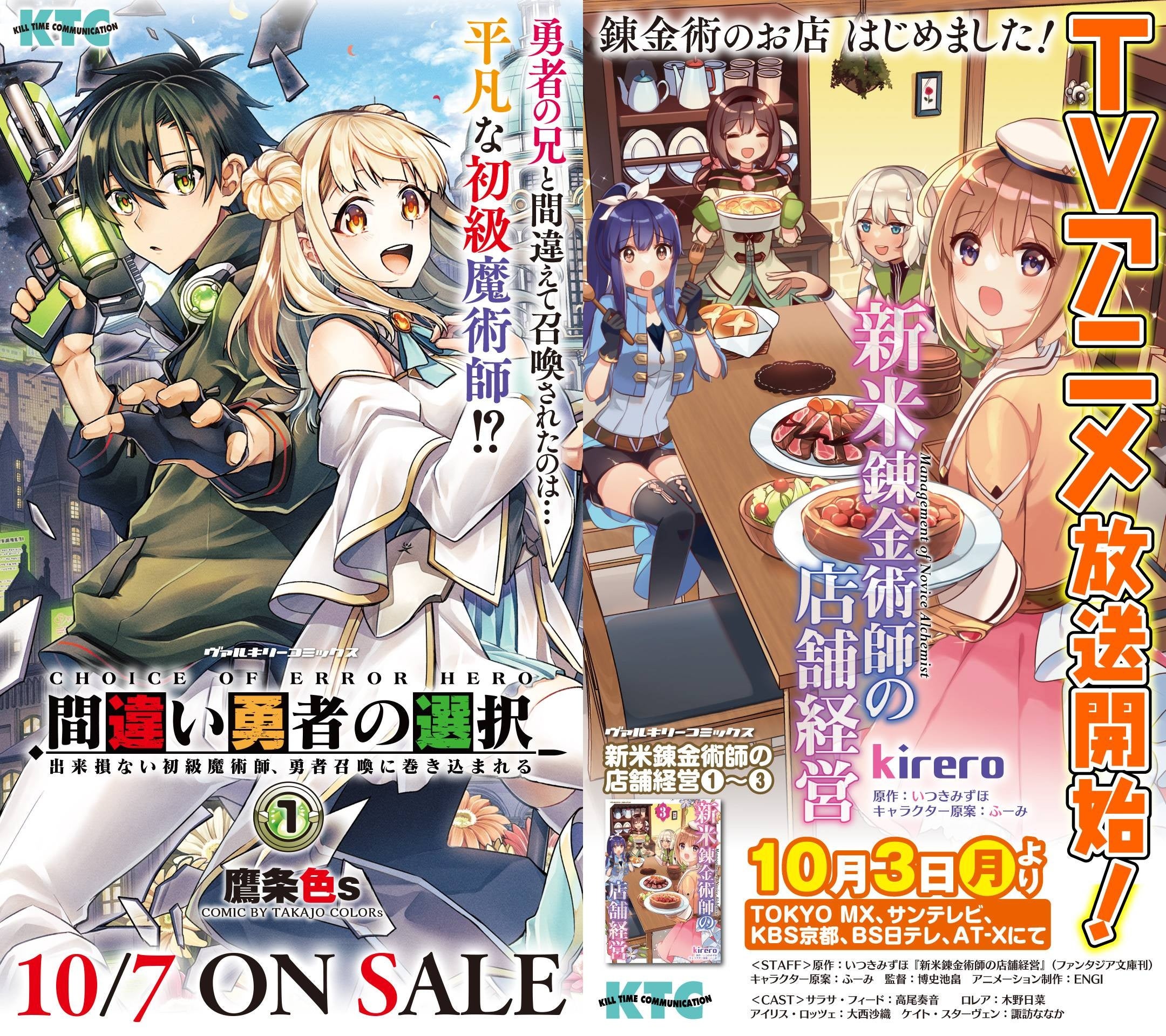 キルタイムコミュニケーション(東京都中央区)は、ヴァルキリーコミックス『間違い勇者の選択 出来損ない初級魔術師、勇者召喚に巻き込まれる』『新米錬金術師の店舗経営』のサイネージ放映を東京メトロ秋葉原駅にて開始いたしました。