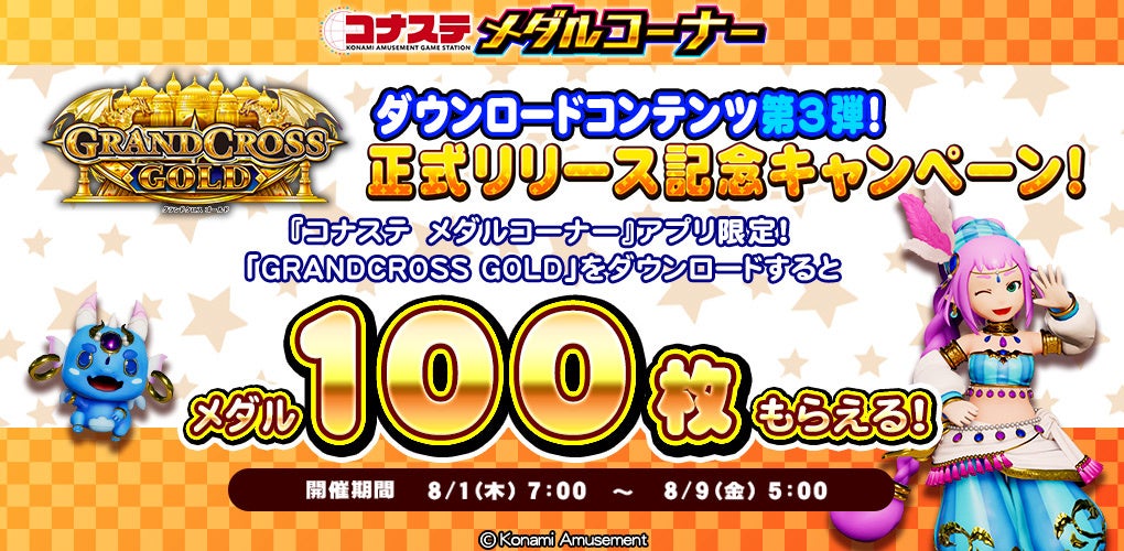 株式会社コナミアミューズメントは、『コナステ メダルコーナー』アプリ内のダウンロードコンテンツとして「GRANDCROSS GOLD (グランドクロス ゴールド)」を正式リリースしたことをお知らせします。