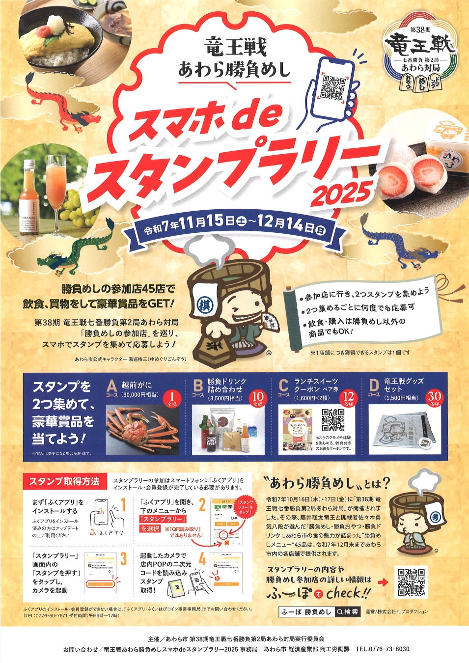 【竜王戦記念イベント】「あわら勝負めしスタンプラリー」開催中!将棋ファン必見、豪華賞品も!