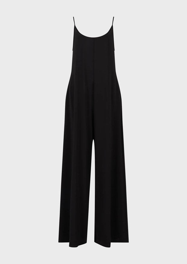 次にご紹介するジャンプスーツは、シンプルながら細いショルダーストラップ、ラウンドネック、ワイドタイプのパンツなどトレンドを取り入れたデザインで、自分らしさを表現するためのスタイルを求める方におすすめです。なめらかな風合いとストレッチ性のある素材が美しいシルエットを演出し女性らしさを際立たせます。実用的なサイドポケットを備えているのも特徴です。