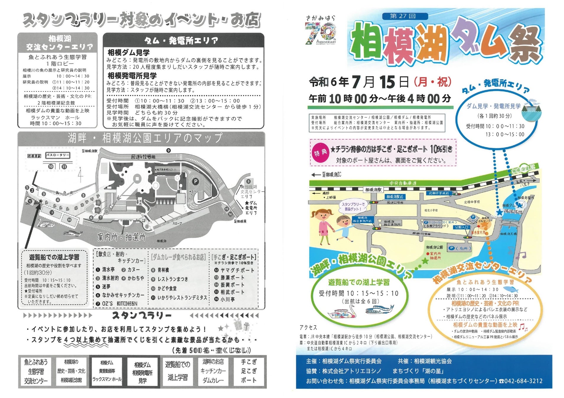 5年ぶりの開催となる今回は、普段は見ることのできない相模ダムや相模発電所の内部の見学や、遊覧船での湖上学習、景品が当たるスタンプラリーなど様々な催しが行われる予定です。