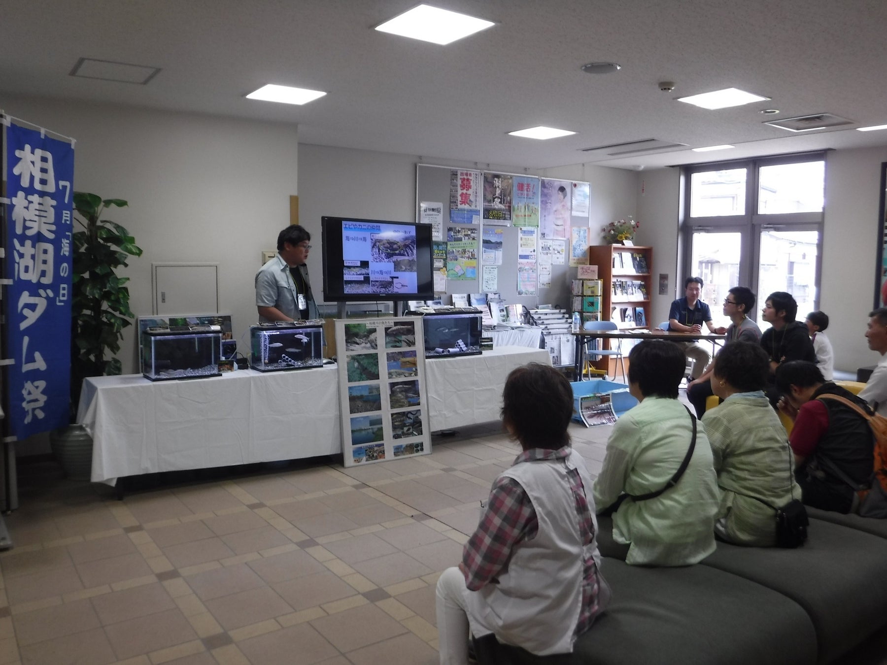 【相模湖交流センターエリア】 魚とふれあう生態学習、相模ダムの歴史などパネル展示、動画上映ほか