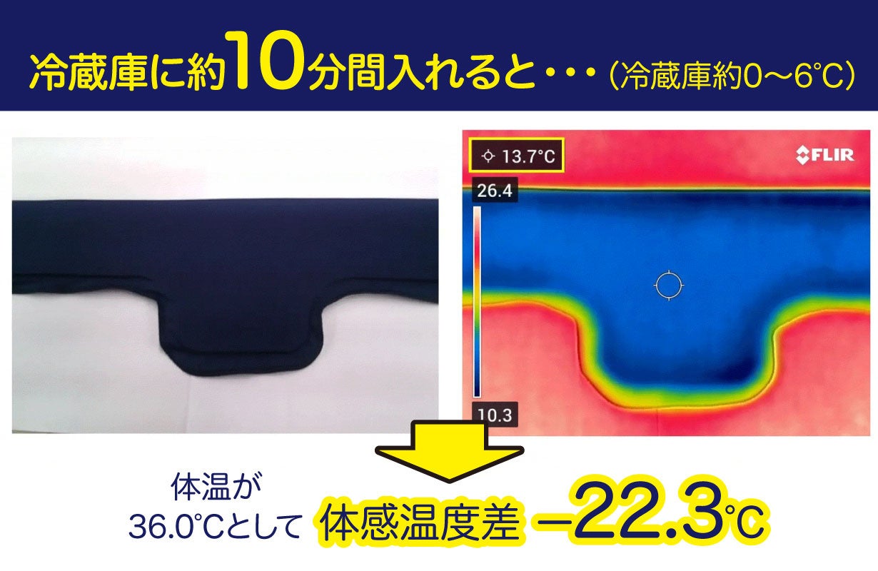 そのまま使用してもひんやり気持ちいいですが、冷蔵庫に入れてから使用するのもおすすめです!約10分間入れて使用するとこんなにも冷たくなります!