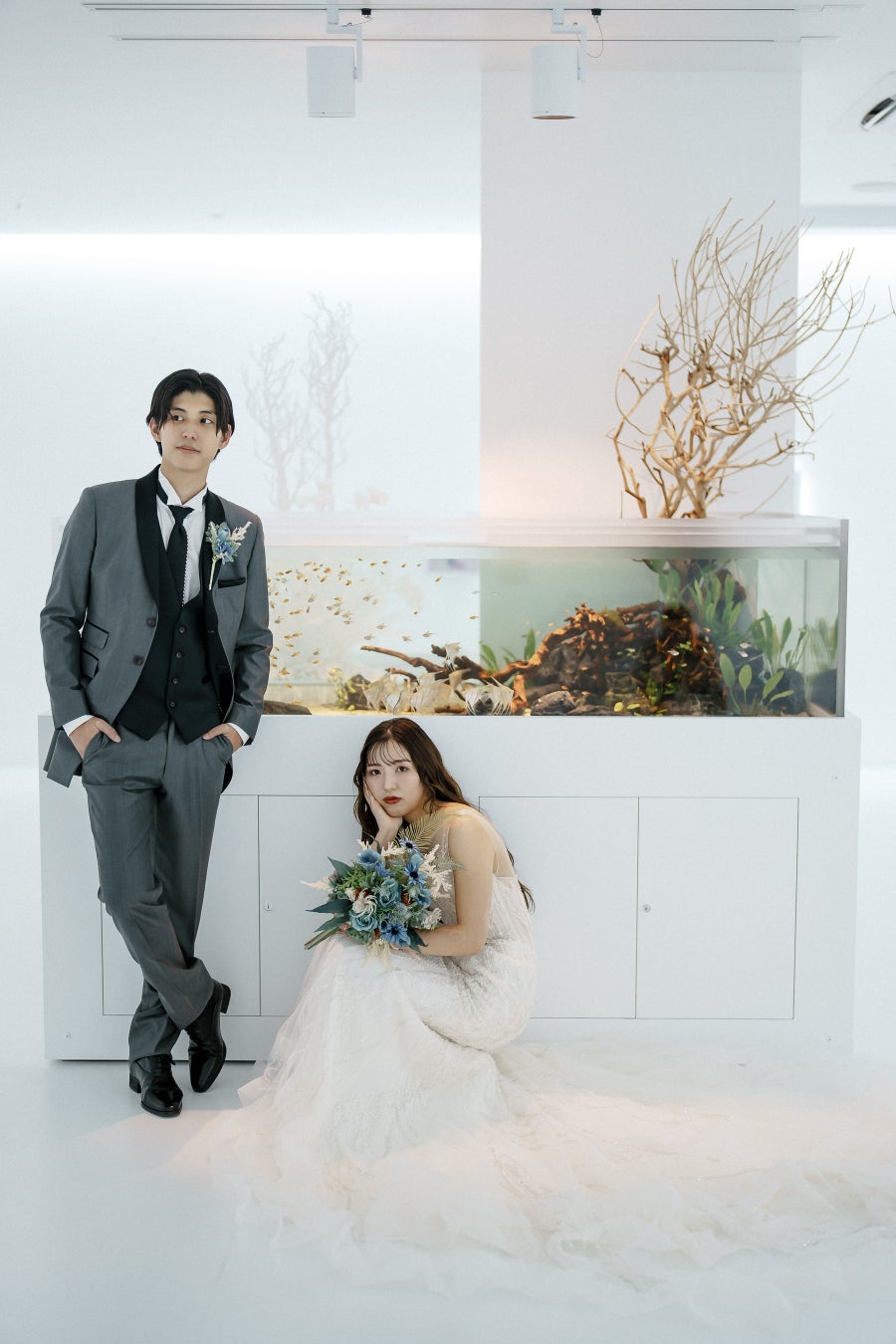 【広島もとまち水族館 × エルセルモ広島】まるで物語の世界⁉魚が優雅に泳ぐ幻想的な空間で撮影!特別なフォトウェディングプランを1月27日より受付開始します