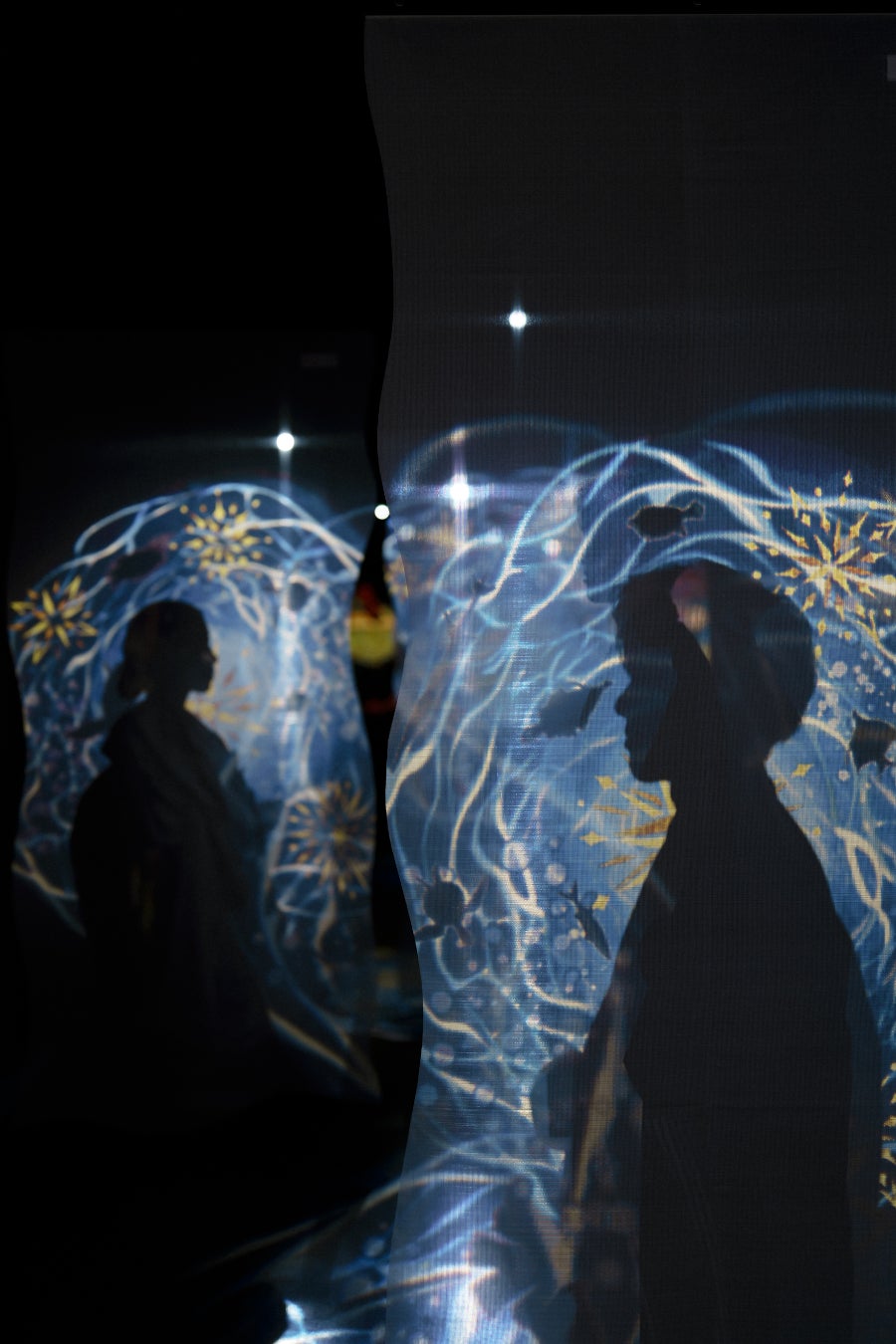 「花鳥風月」をテーマにした、光の切り絵と海の生きものが織りなす幻想空間。