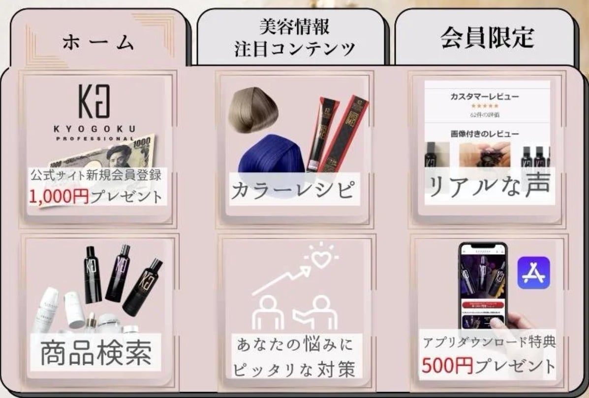 鉄板レシピが作れる参考動画や、KYOGOKU全カラーのチャート、無料技術動画などカラーにまつわる様々なコンテンツを配信しています。