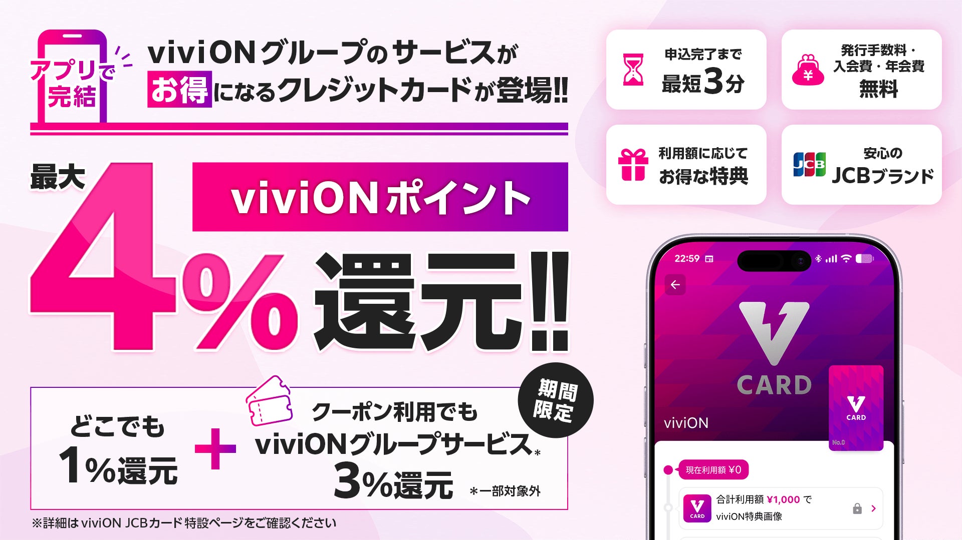 viviON、ナッジと提携し『viviON JCBカード』の提供を開始。グループサービス利用で最大4%ポイント還元のキャンペーンも開催!
