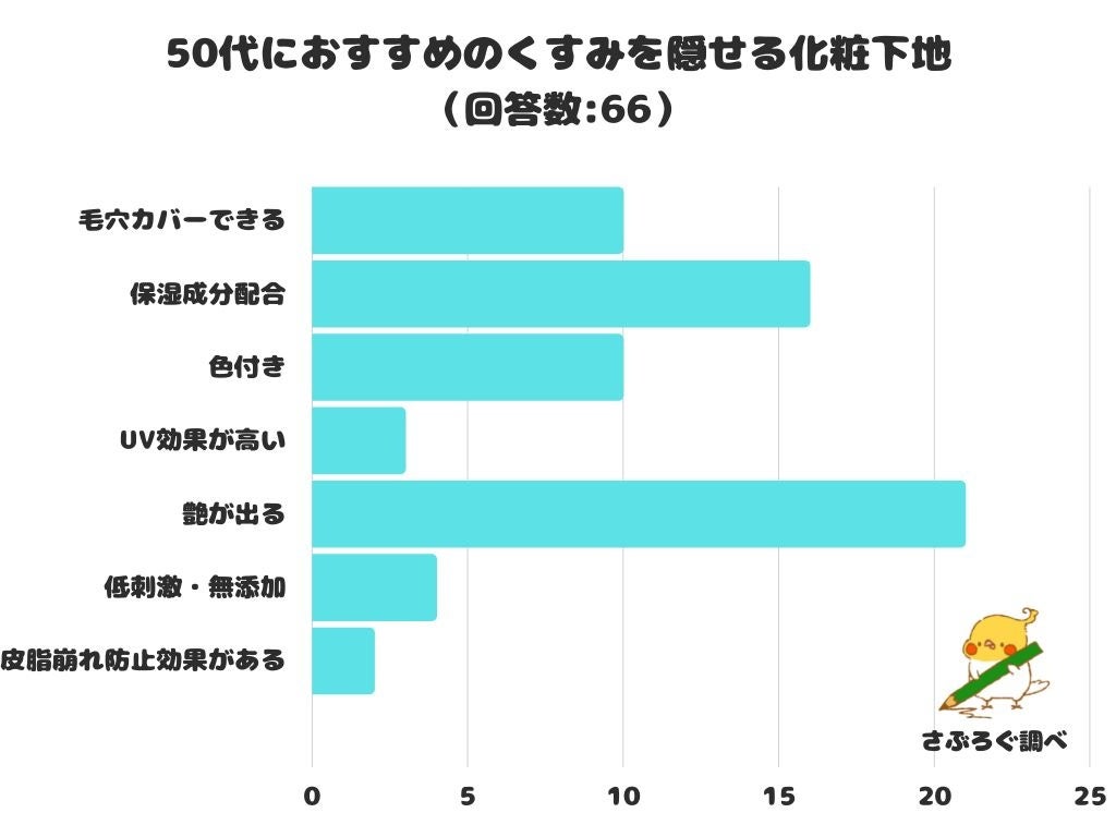 【調査レポート】50代におすすめのくすみを隠せる化粧下地の選び方は?1位になったのは「艶が出る」でした!
