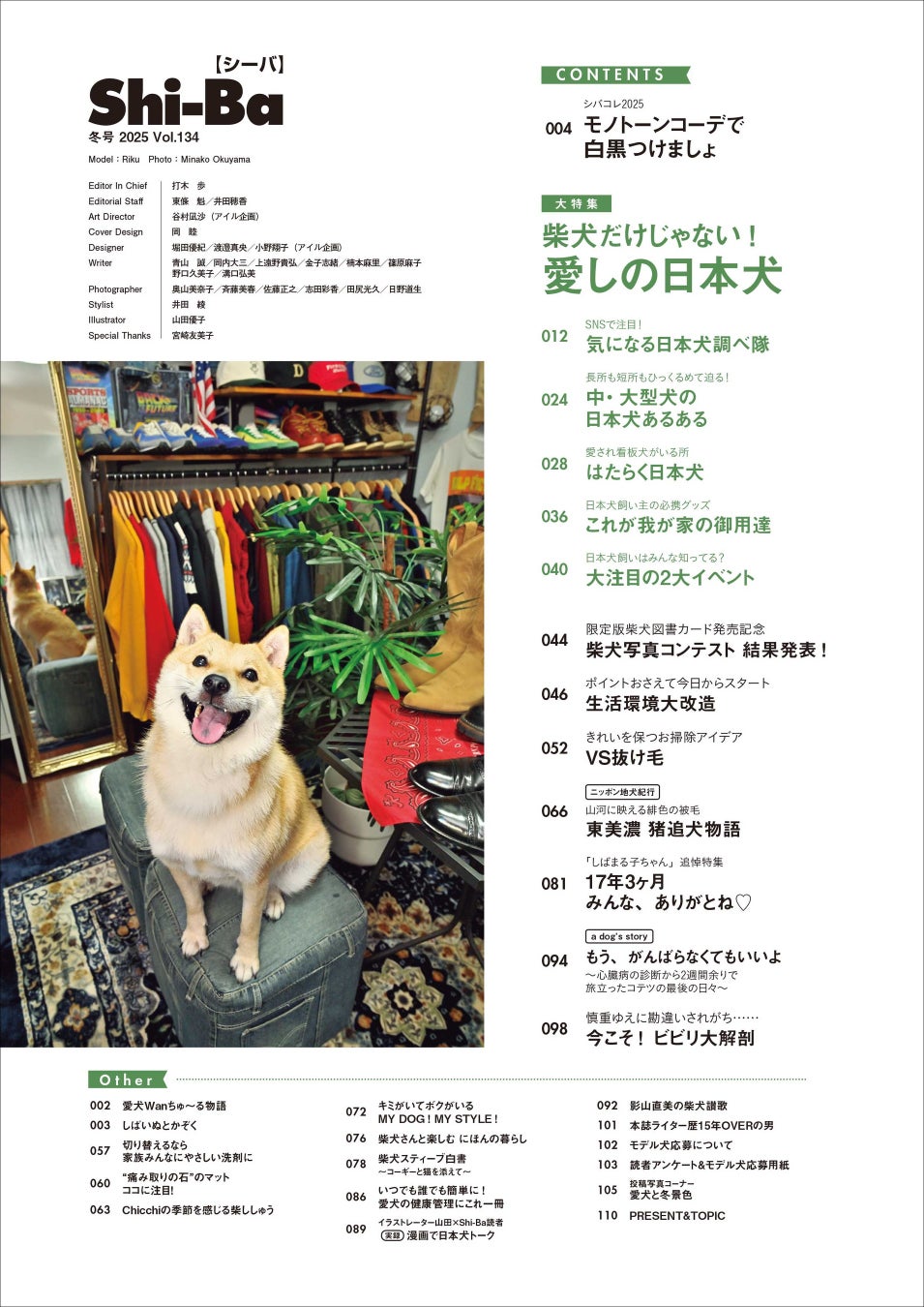 最新号Vol.134ではそんな中・大型の日本犬の魅力や、飼い主さんなら共感できる「あるある」を特集。SNSの発信で注目を集めるインフルエンサー犬や、さまざまなスポットで活躍する看板犬たちも登場し、日本犬の全犬種が大集合する1冊です。