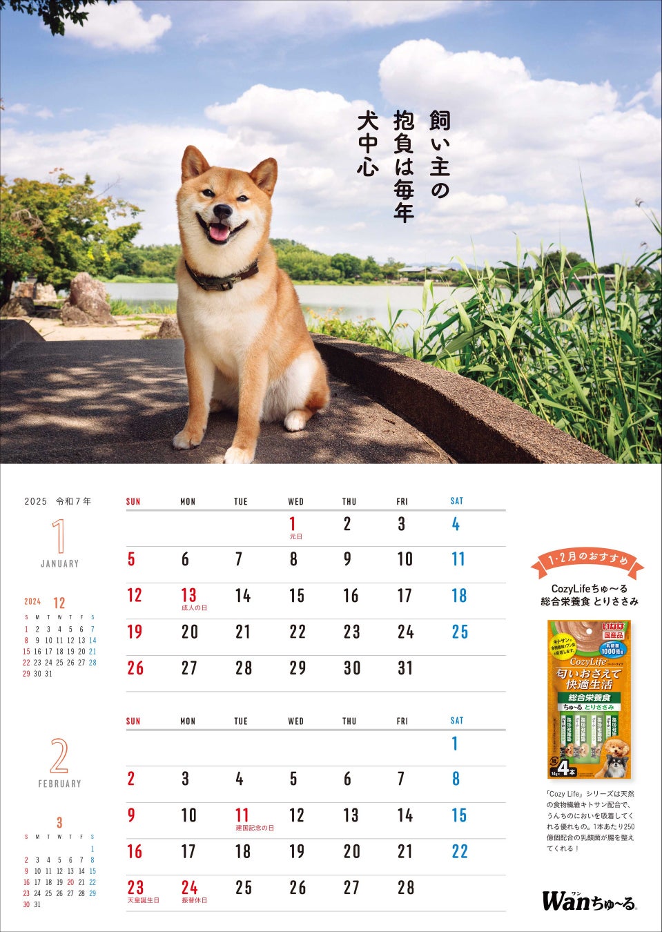 特別付録として、毎月かわいらしい日本犬が楽しい川柳を詠んでくれる「しばせんカレンダー 2025」がついてきます。壁掛け式で飾るのにぴったり。予定も書き込みやすい便利な仕様です♪
