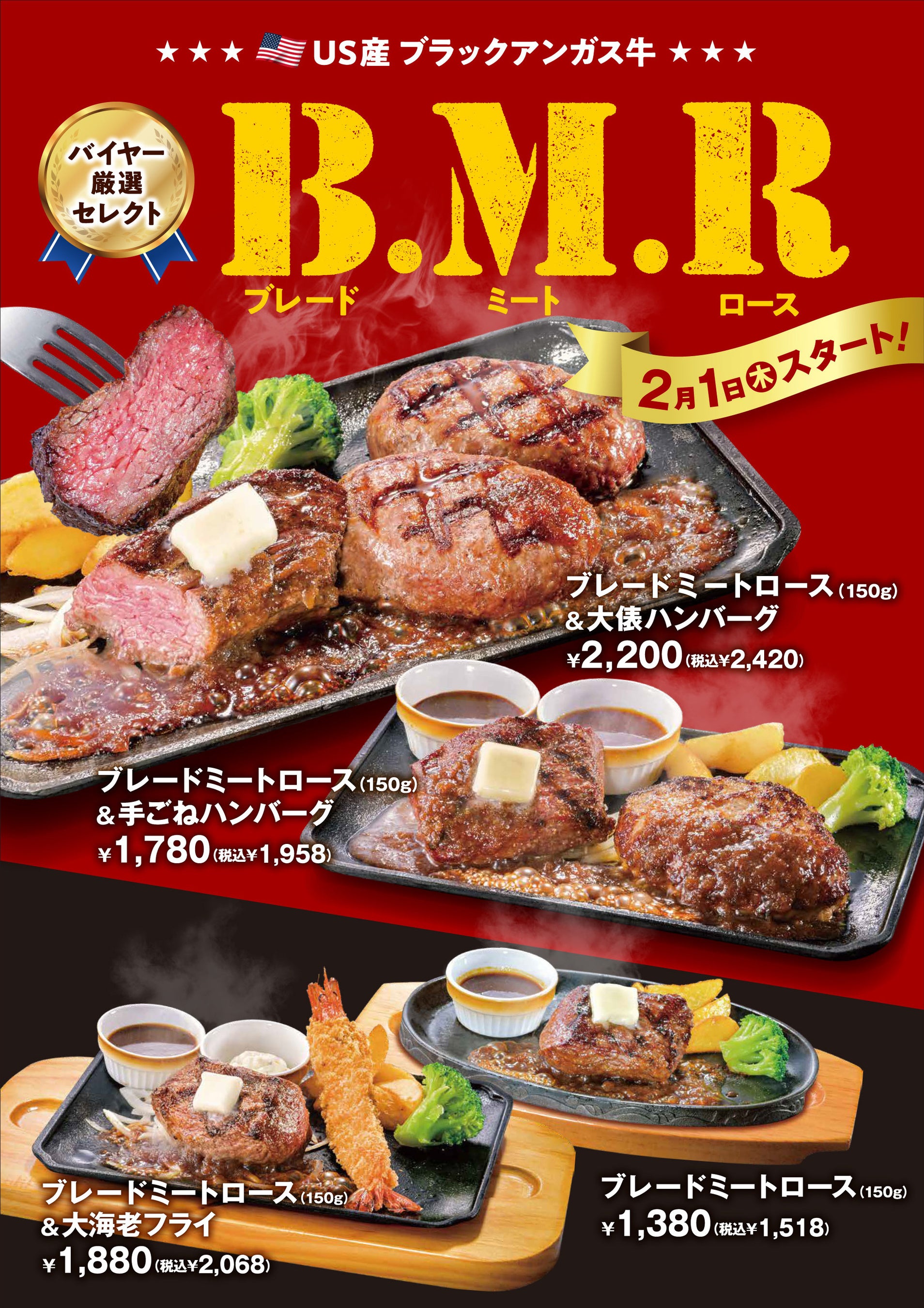 また、ビッグボーイの看板商品“大俵ハンバーグ”とのコンビネーションが楽しめる「ブレードミートロース&大俵ハンバーグ」や、ブラックタイガーを使用したプリプリサクサクの大海老フライも堪能できる「ブレードミートロース&大海老フライ」、ジューシーな手ごねハンバーグと組み合わせた「ブレードミートロース&手ごねハンバーグ」もご用意しています。