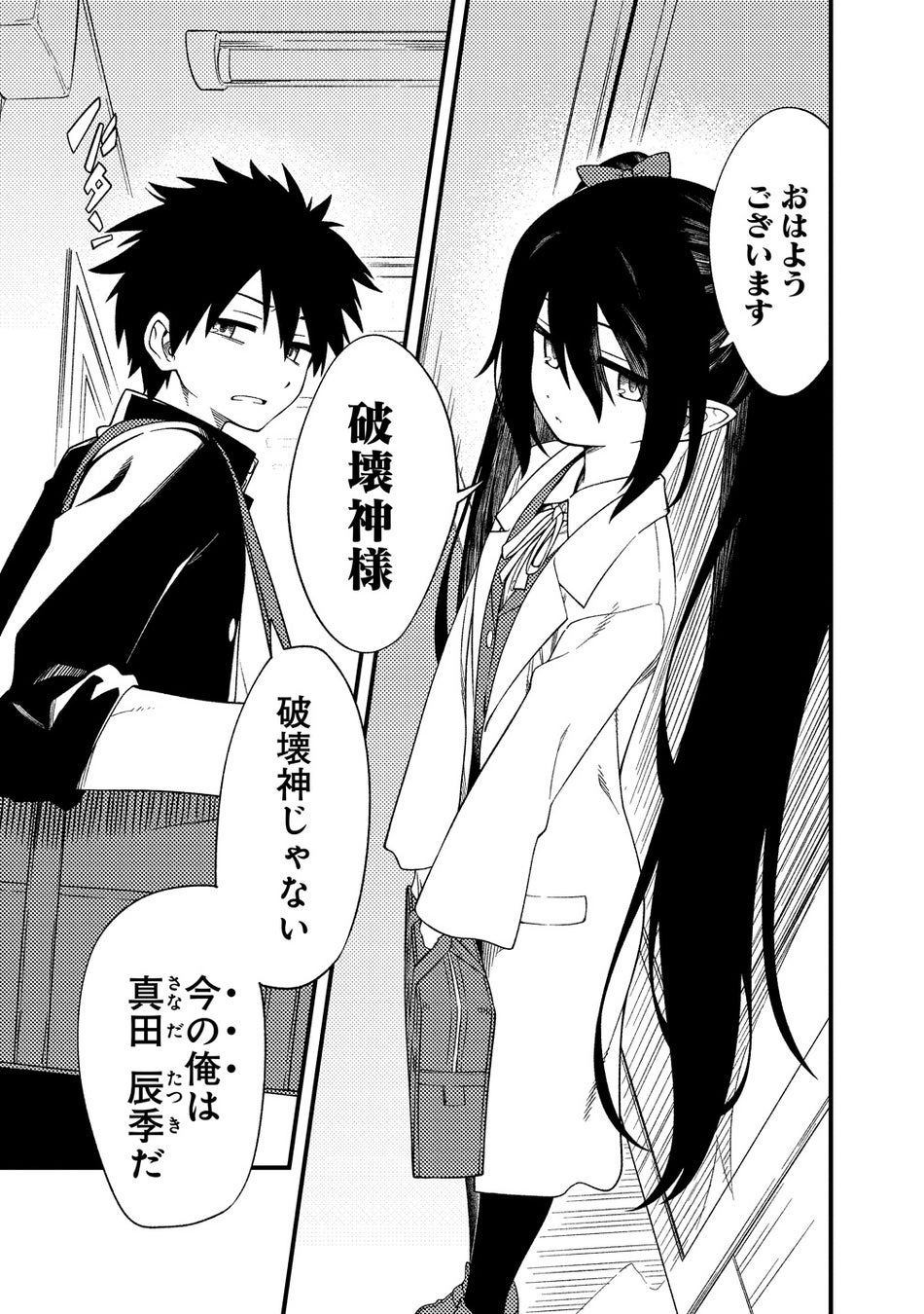 かつての紅の破壊神・真田辰季(さなだたつき)は日本に転生して、平穏な毎日を送っていた。しかし高校生になったある日、異世界から来たという美少女・狐塚日花里(こづかひかり)に魂を狙われて――。