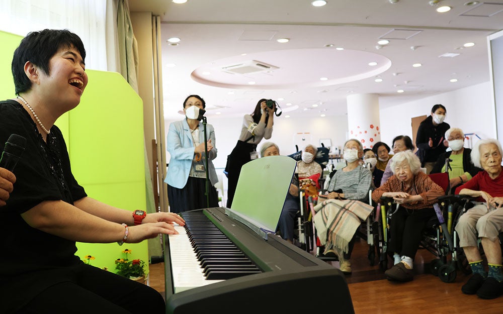 超早産児で生まれた障がい者ピアニスト河野みゆきさんが高槻市の高齢者施設で演奏を披露