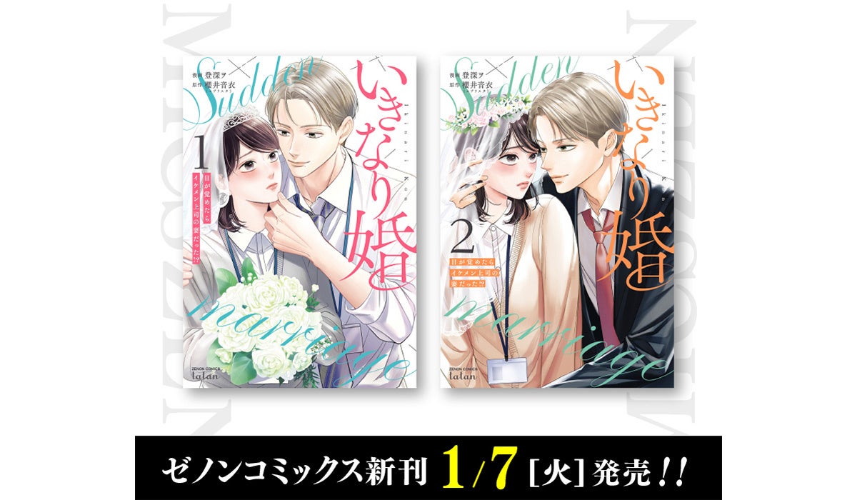 『いきなり婚 目が覚めたらイケメン上司の妻だった!?』は、独占先行配信をしているめちゃコミックを筆頭に各電子書店で話題沸騰中。紙版は、1月7日にコミックス第1巻・第2巻が同時発売された。電子版は、第4巻まで絶賛発売中だ。